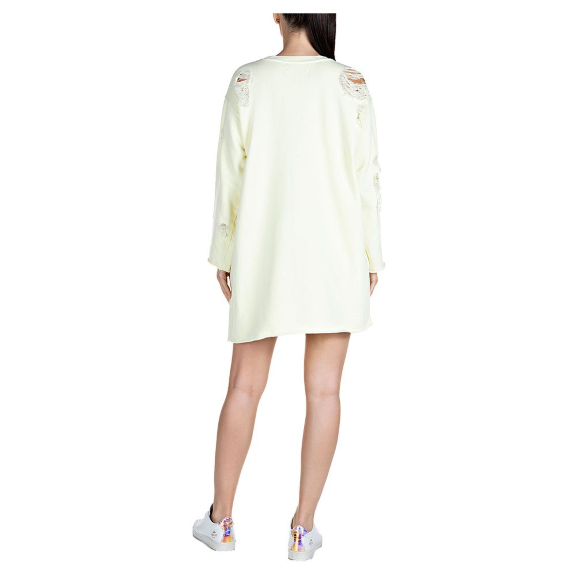 * Women's in solid-coloured cotton dress, oversized with long wide sleeves and dropped shoulders, rounded neck, all-over abrasions and breakages, two side welt pockets, REPLAY writing printed at the front of the hem. This sweatshirt belongs to the REPLAY EARTH MADE HUMAN CRAFTED collection designed to create items with a strong identity linked to our planet Earth. The item has been treated with natural pigments with ZDHC certification that convey a vibrant colour and react differently with each fabric, creating a unique and original look.