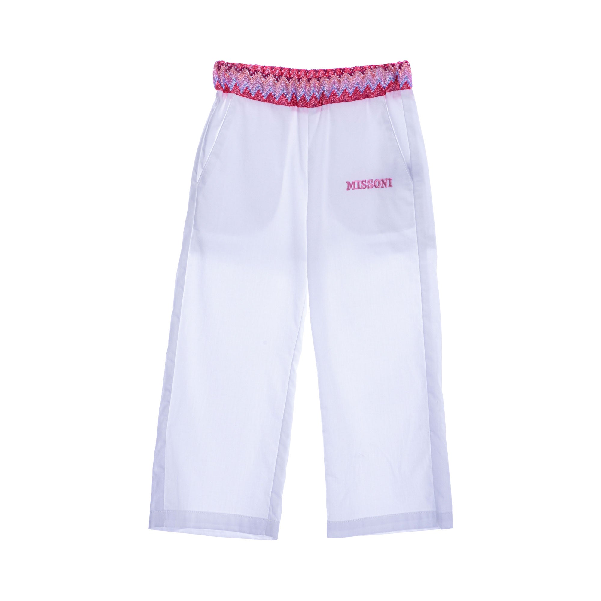| This Missoni Kids Girl's Fuchsia Set Top & Trousers is perfect for any occasion. The round neck top has short sleeves and a back zip closure for easy changes. The Fuchsia Color stands out and is an eye catcher for any occasion.The white trousers feature a brand logo to the one leg and side pockets. Perfectly complementing the trousers is the zig zag pattern elasticated waistband, adding to the fun of the set. Perfect for birthday parties, family events and weekend play. This Missoni Kids Girl's Fuchsia Set Top & Trousers is sure to be a favorite pick. SPECIFICATIONS