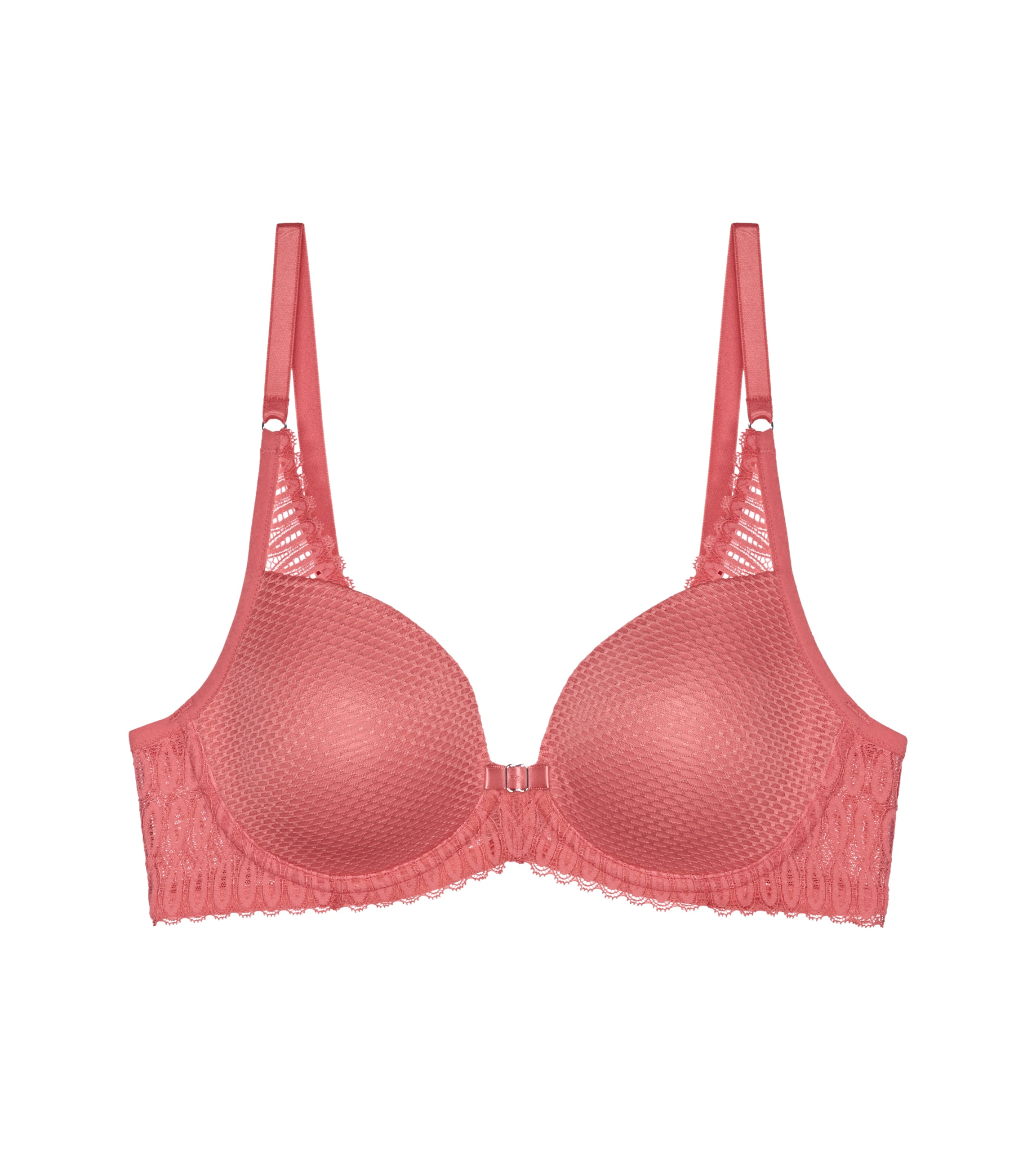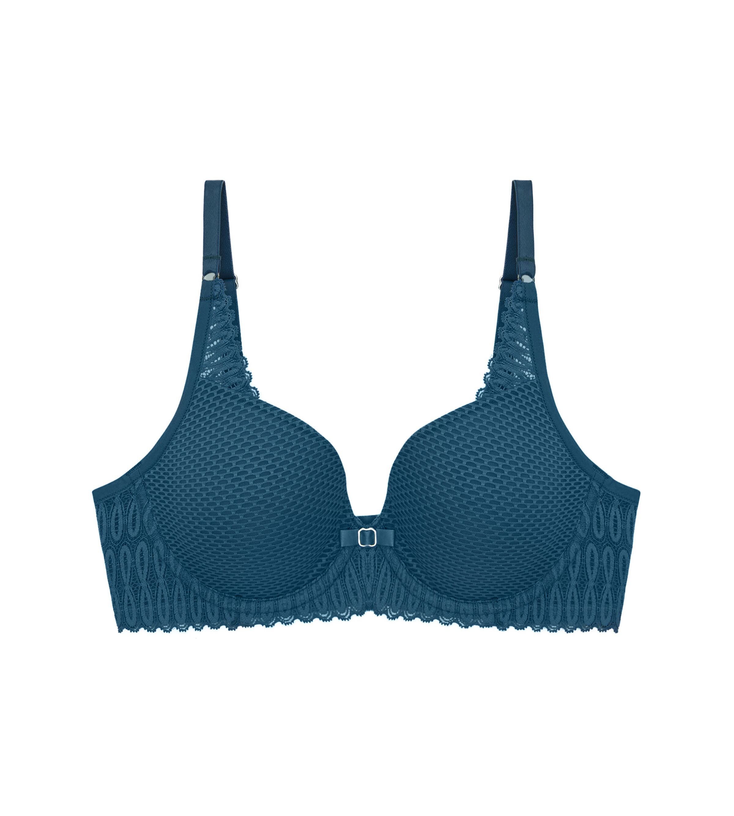• Cups made of soft textured fabric with patterned lace details