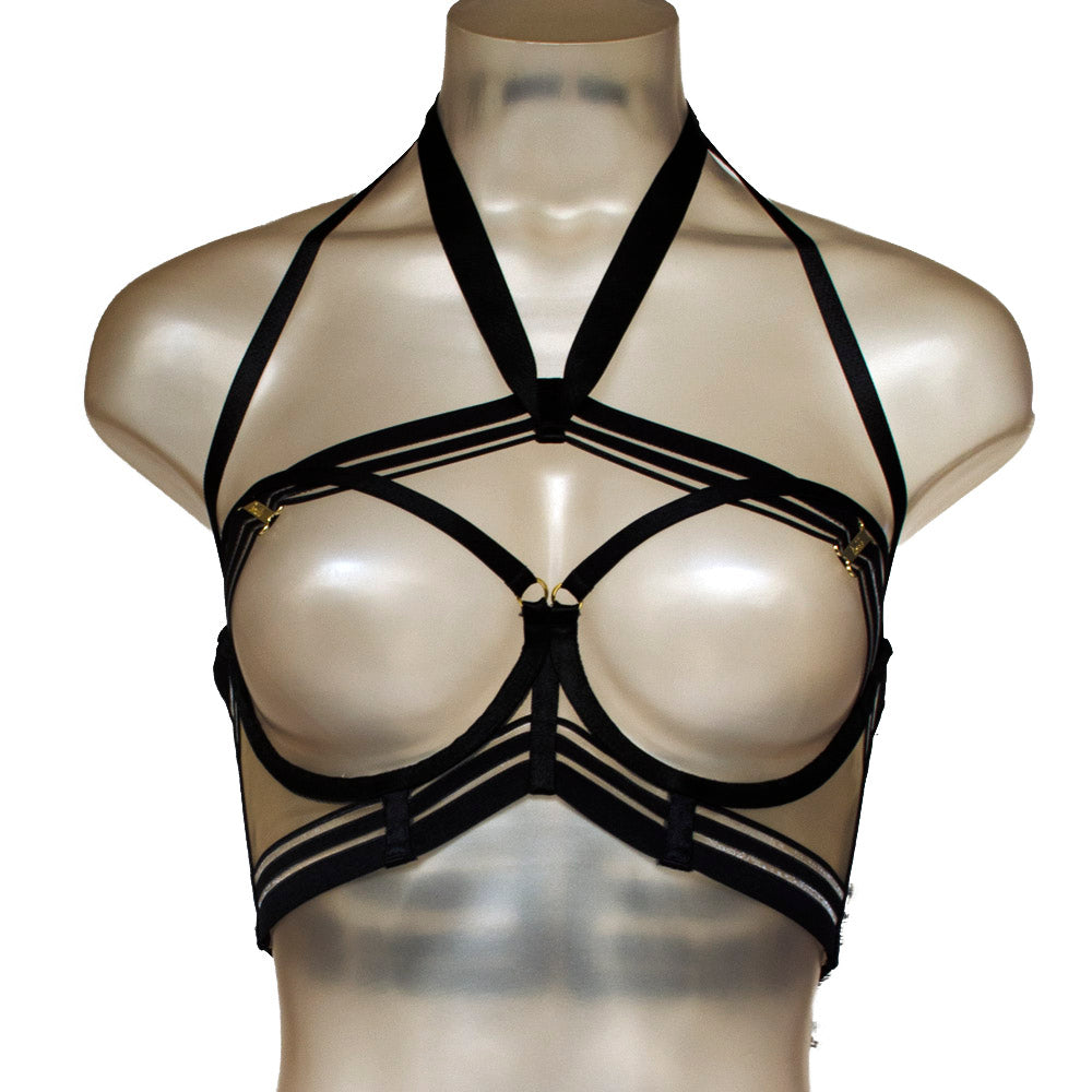 حمالة الصدر الكلاسيكية المفتوحة ذات الأسلاك تليق بعرض حقيقي. الياقة الكبيرة المطلية بالذهب عيار 24 وقابلة للتعديل بالكامل لتلائمك وتناسب شخصيتك