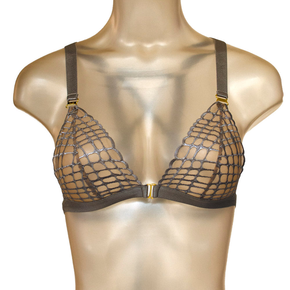 حمالة صدر سيسي مثلثة الشكل من بورديل صممت خصيصا من التول المطرز السويسري الدقيق ويمنح حزام الساتان القابل للتعديل مع مكوناتهاالمميزة المطلية بالذهب عيار 24 قيراطًاوالقابلة للتعديل الرفاهية المطلقة