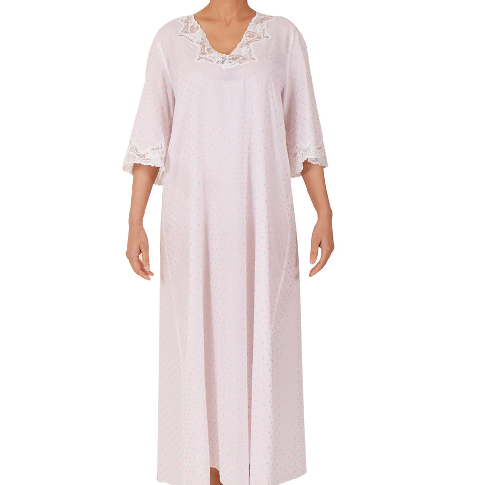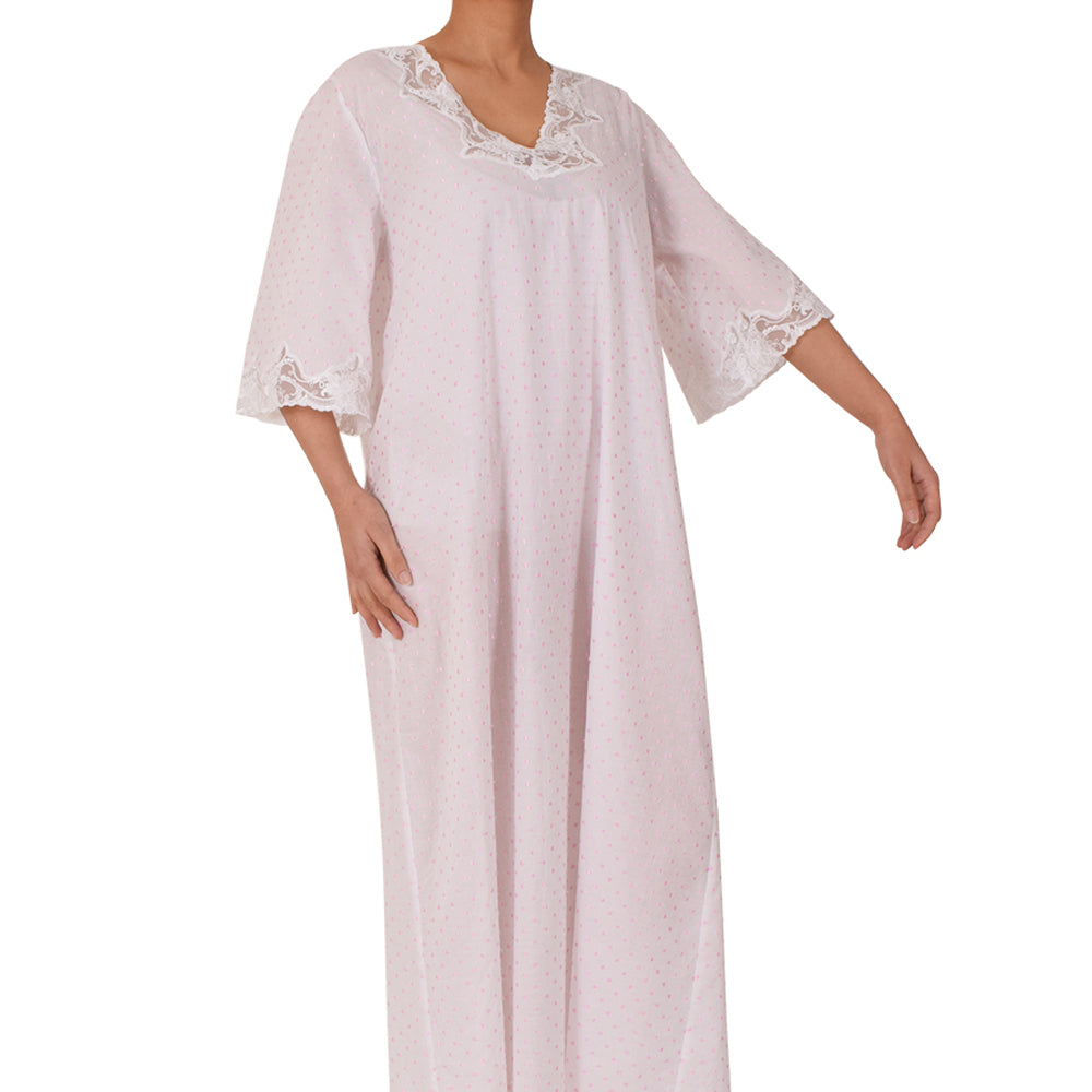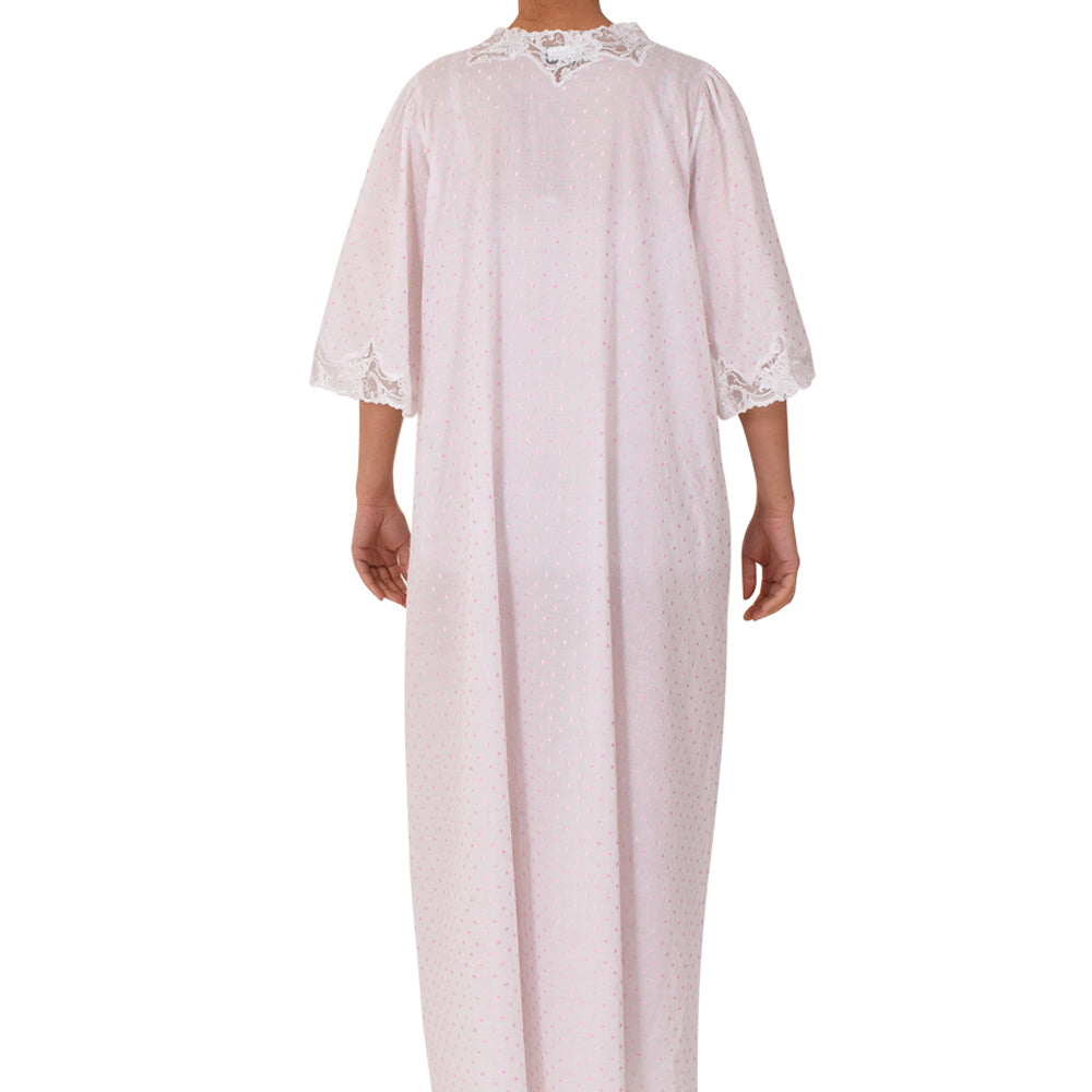 ثوب النوم هذا يظهر في كل مكان مطرز من القطن ا للطيف. مزين بدانتيل عاجي / بيج أنيق للغاية