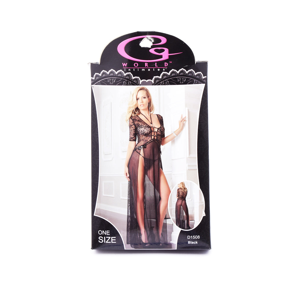 ثوب مثير ورقيق مكون من قطعتان مرفوقة برباط ناعم من الدنتيل الرقيق وقلادة ساحرة بشكل القلب وشق امامي ساحر اضافة لسروال بشكل قلب .
