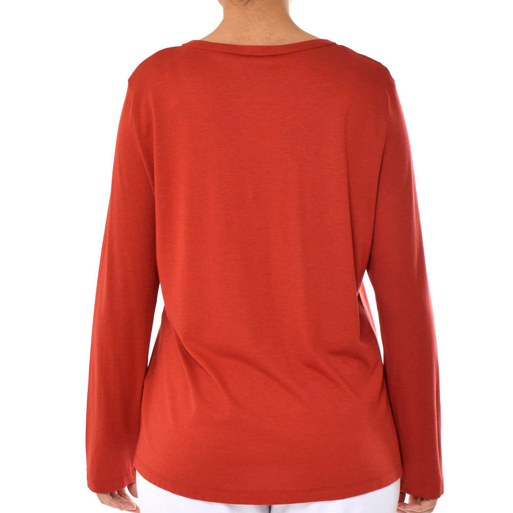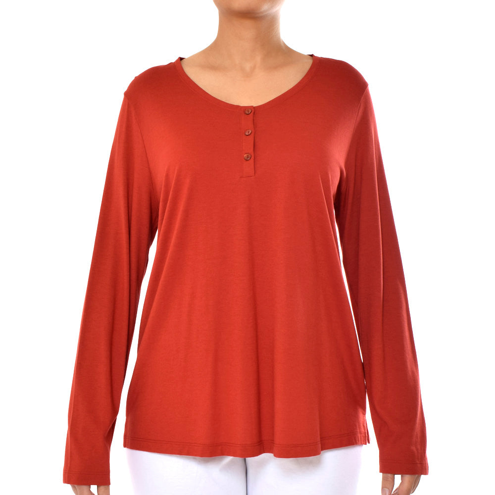 قميص هانرو هينلي للنوم باكمام طويلة احمر صدئ مقاس L