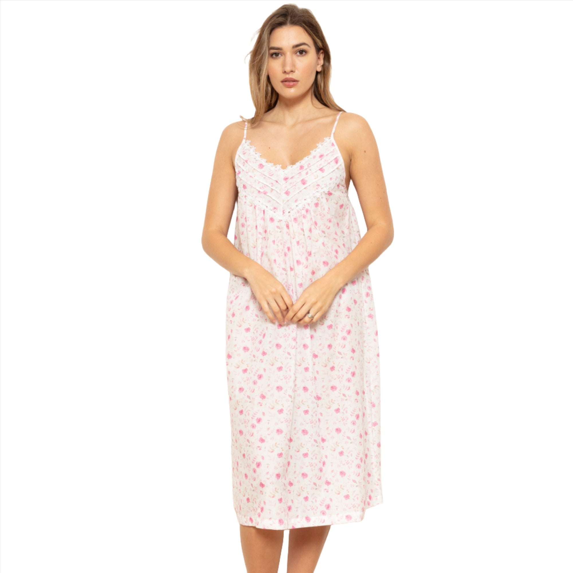 - Cottonreal Women's KITTY Super Voile Mini Rose Pink Spaghetti Strap Nightdress.