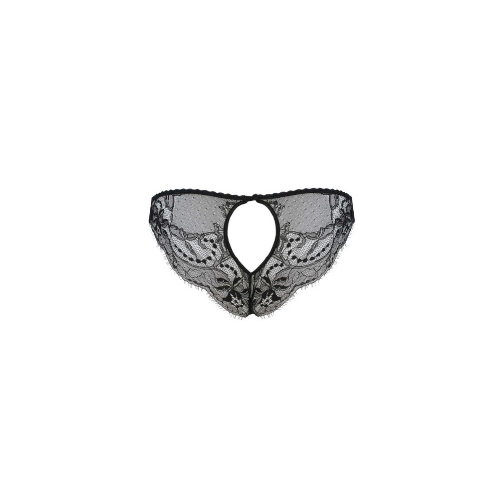 The Fleur of England Signature Lace Ouvert Brief is a stylish and seductive addition to any lingerie wardrobe. This classic brief is crafted from luxurious black lace with a silk satin finish that's soft and silky to the touch. The ouvert design offers a cheeky peephole cut-out at the back, adding a touch of contemporary boudoir style, while the smooth cotton-lined gusset ensures all-day comfort and breathability. The Signature Lace Ouvert brief is hipster-fit and features French lace panels at the front and back, creating an elegant and feminine silhouette. The straps are made from silk encased elastic for a secure and comfortable fit and the peephole feature is bound with silk and fastened with a single button. Complete the look with the Signature Black Boudoir Bra for a fierce and flirty look that's sure to get pulses racing.