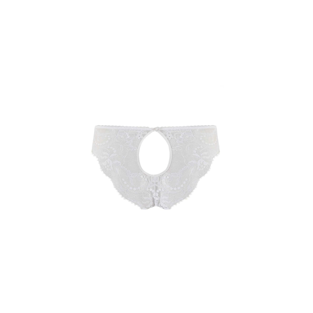 The Fleur Of England Signature Lace Ouvert Brief is an undeniably sexy piece of lingerie. Its delicate design adds to its graceful allure. The exquisitely crafted white leavers lace hugs your body in all the right places. The romantic hipster fit and peephole feature day the perfect finishing touch to this erotic piece of lingerie. The briefs are designed with comfort in mind. The cotton lined gusset ensures absolute comfort no matter the length of time they are worn. The elastic straps are encased by silk, and fastened with a single button for ultimate convenience. Make an unforgettable entrance wearing the Fleur Of England Signature Lace Ouvert Brief. This piece is guaranteed to add a romantic atmosphere to any special occasion. With its alluring design and captivating brand name, this exquisite piece of lingerie will leave you feeling and looking beautiful on your special night. SPECIFICATIONS