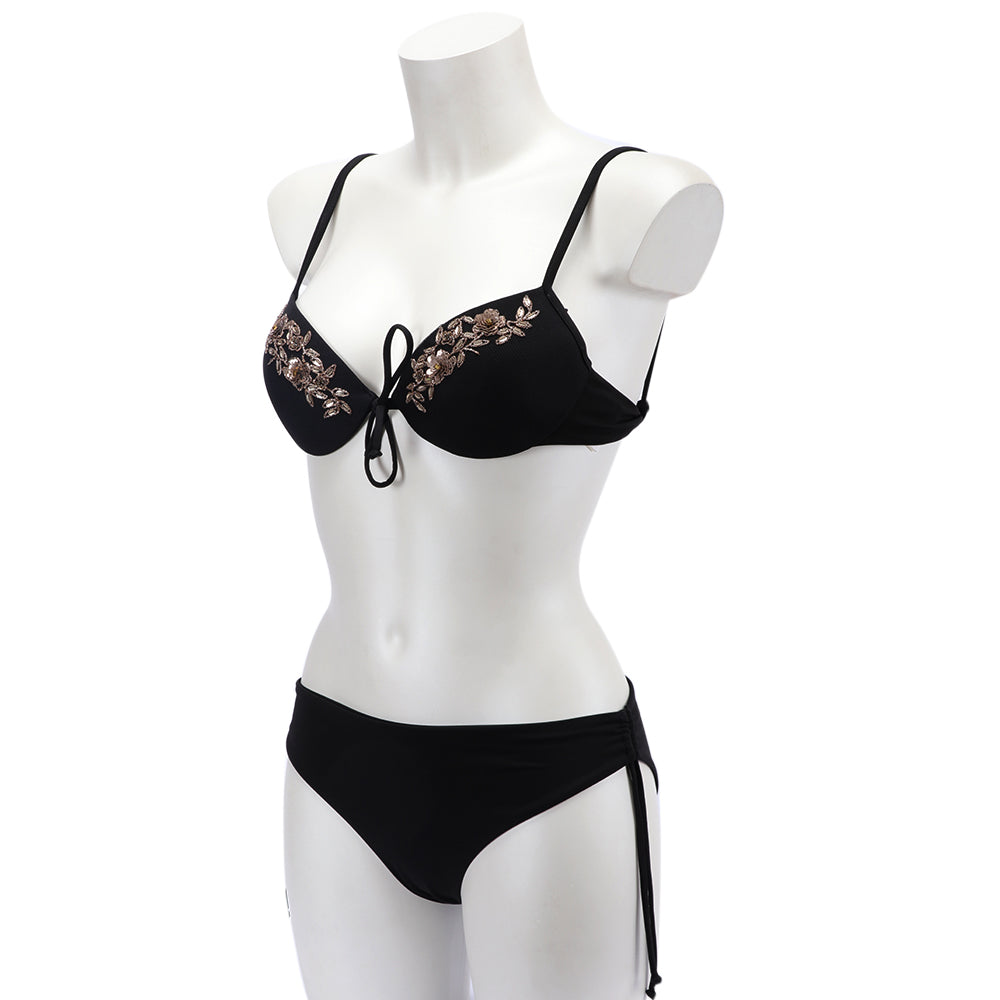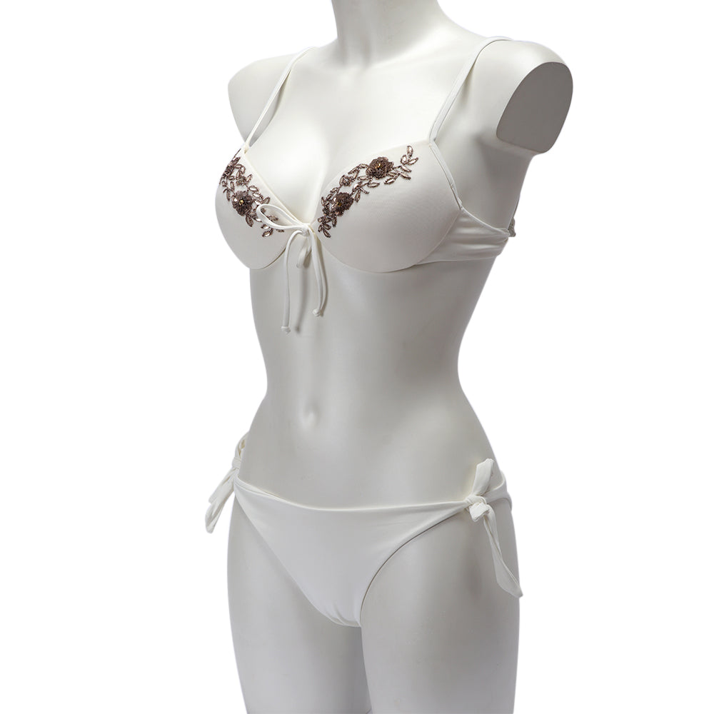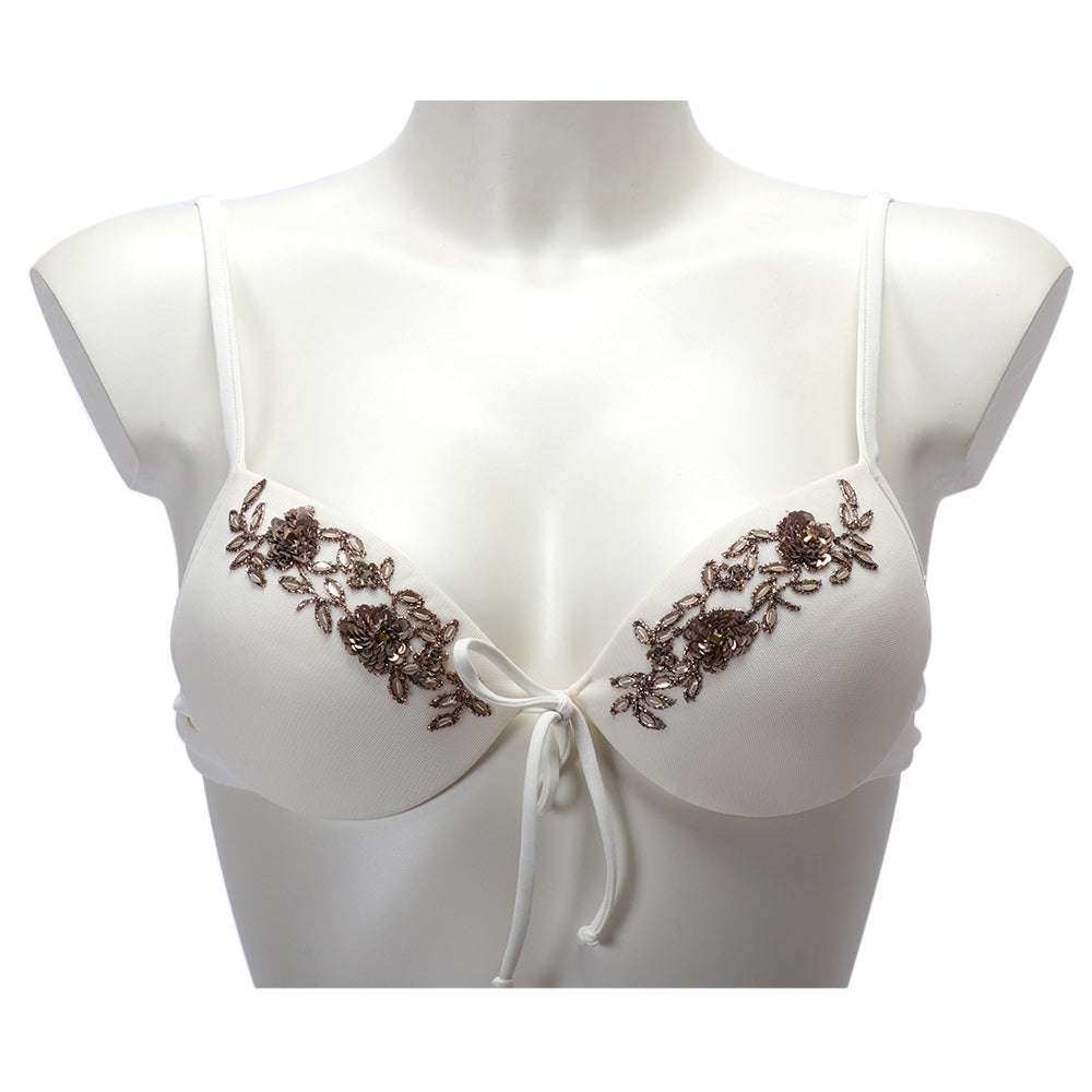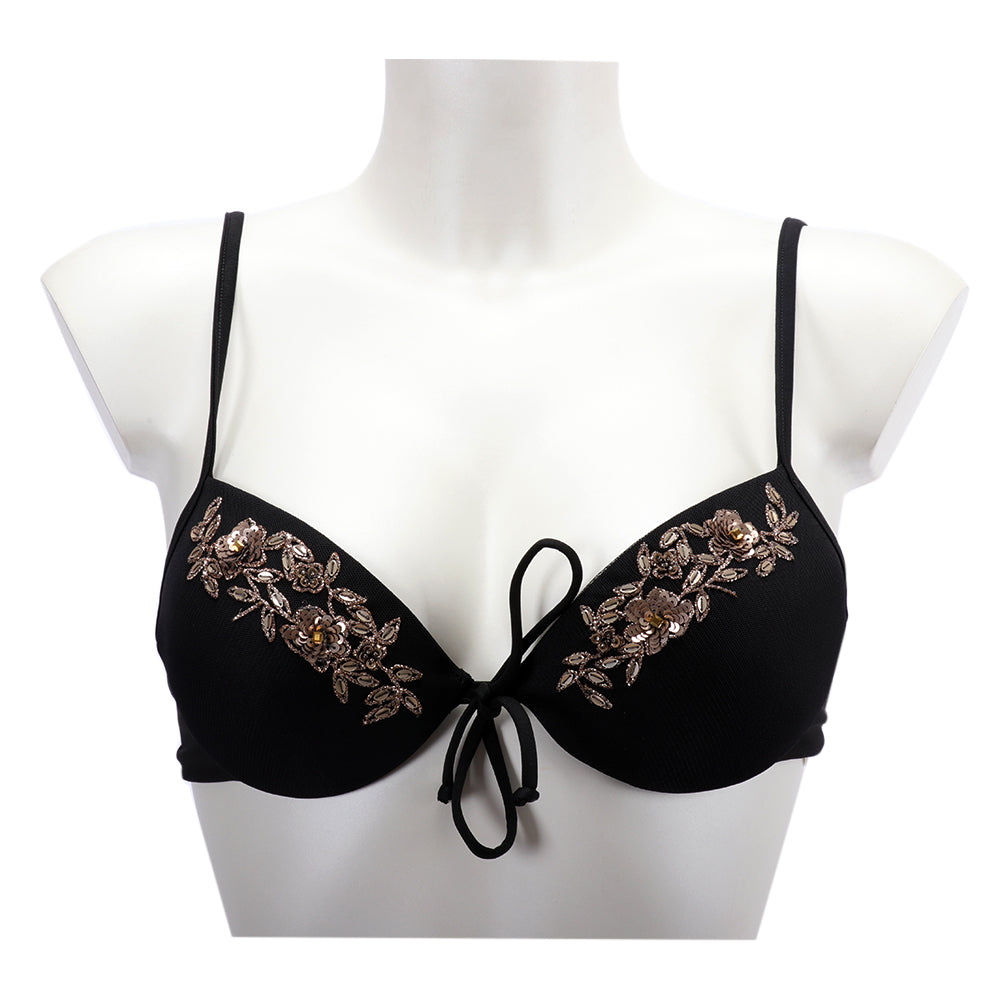 This Twinset Embroidered Push-Up Bikini Top is a must-have for any pool or beach getaway. With its stunning hand-embroidered design, it is sure to be a memorable piece. The top is padded with non-detachable cups for a secure fit, and features a small bow detail on the front. The small hook closure on the back ensures a comfortable fit, and the bright colors will ensure you stand out from the crowd. This bikini top will easily pair with any bikini bottoms to create a show-stopping poolside look. Add a few statement pieces of jewelry for a gorgeous warmer-weather look. Whether you're lounging on the beach or enjoying a boat party, this push-up bikini top will have you feeling and looking your best. SPECIFICATIONS