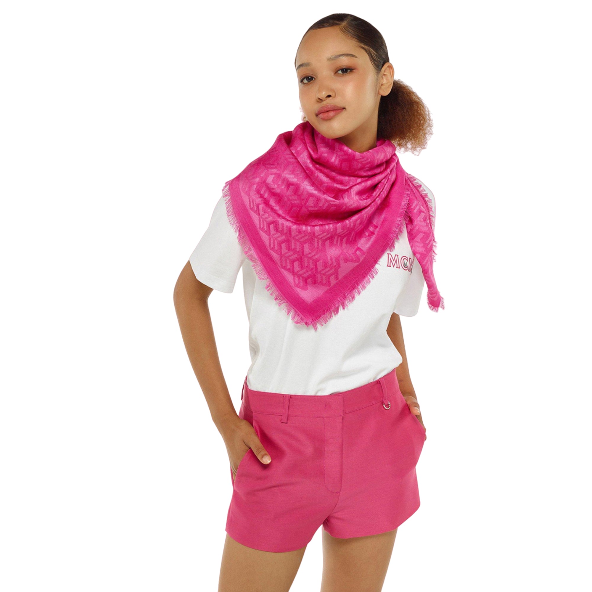 The infinite Cubic monogram is jacquard-woven on this Italian silk-wool shawl in an understated manner. Presented in the vibrant fuchsia purple colorway, the layering staple envelops the wearer in the radiant warmth of the Haus.