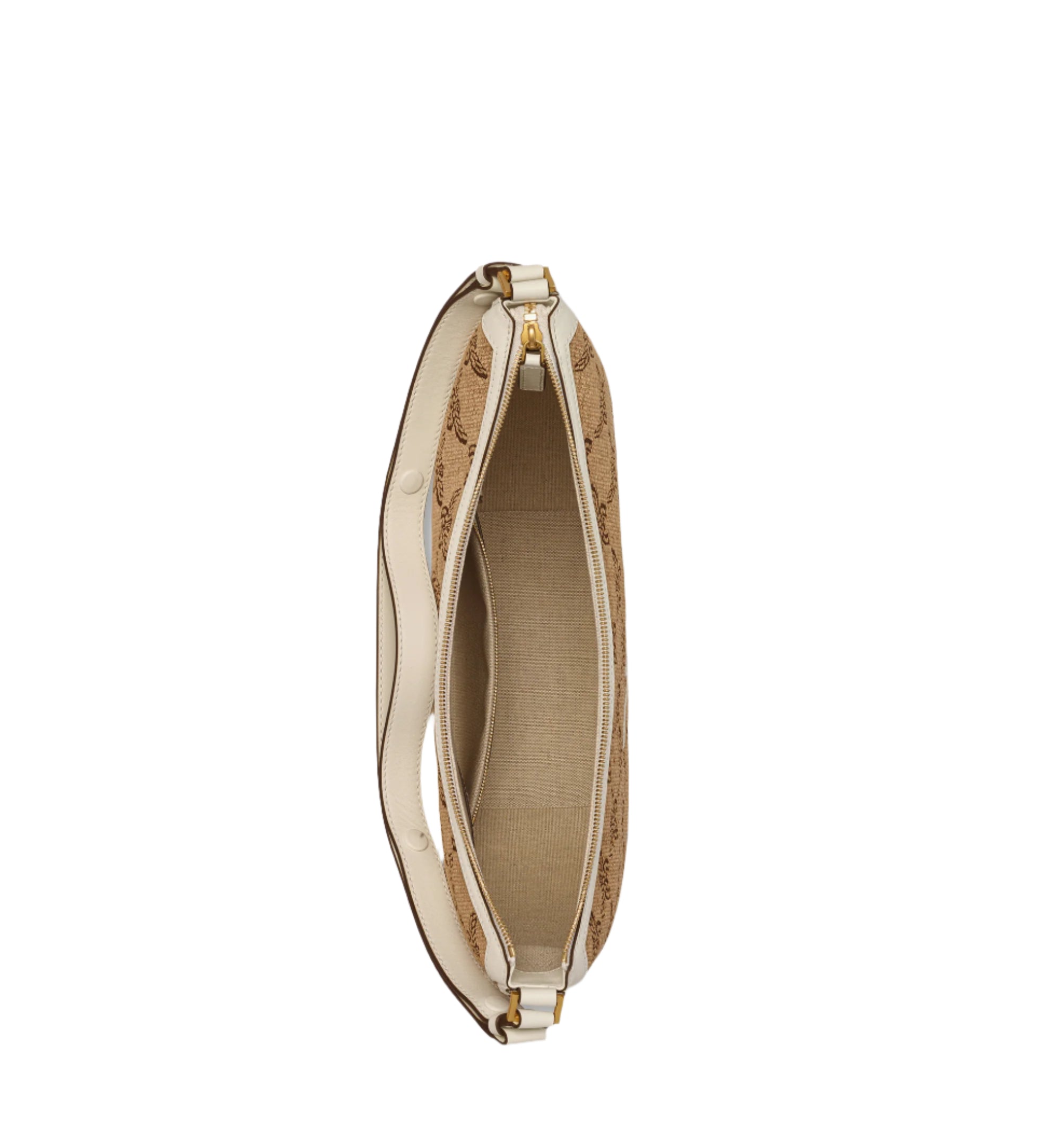 | The MCM Women's Himmel Ascending Moon Hobo in Lauretos Raffia Jacquard is a stunning interpretation of the timeless crescent hobo bag. Made with Italian raffia fabric, this bag showcases a bold curved design adorned with the iconic laurel emblem of the Munich House. The intricate embroidery of the logo and luxurious white leather details add a touch of elegance to the bag. The 24k gold-plated brass hardware complements the overall luxurious look of the bag. The interior is lined with fabric, ensuring both style and functionality. This bag is a perfect choice for those looking for a sophisticated and versatile accessory that can elevate any outfit. SPECIFICATIONS • Brand: MCM • Gender: Women • Approximately 3.7 x 13.4 x 12.6 inches • Handle strap drop: 12.6" • Leather handle strap • Zip closure • Interior zip compartment • MCM logo embroidery at front • Trim: Natural nappa leather • Body: Italian raffia textile jacquard • 24k gold-plated brass hardware • Fabric lining • Made in South Korea About Brand MCM is a luxury brand that was founded in Munich, Germany in 1976. The brand's iconic logo, which features a laurel wreath and letters MCM, stands for Modern Creation München. MCM's signature style combines the finest quality materials with innovative designs, creating a unique blend of luxury and functionality. MCM's product range includes premium leather goods such as handbags, wallets, and accessories, as well as ready-to-wear clothing and footwear for men and women. The brand takes inspiration from travel, art, and street culture, resulting in a bold and distinctive aesthetic. |