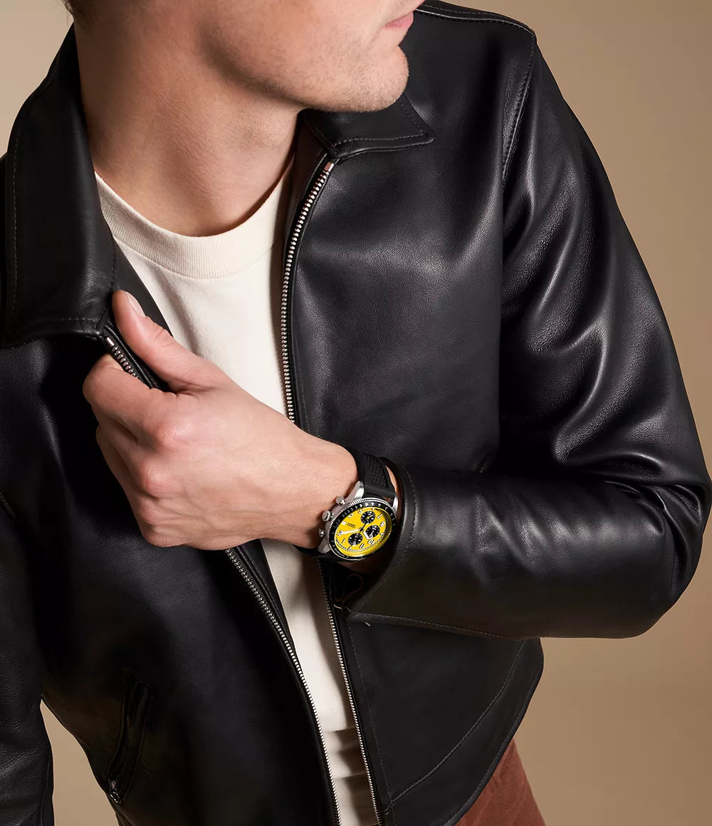 | The Fossil Sport Tourer Chronograph Gents Black Silicone Watch is a stylish and functional timepiece designed for the active man. With a case size of 42 mm, it has a sleek and modern look that will complement any outfit. The watch runs on a quartz chronograph movement, which ensures accurate timekeeping and allows for timekeeping features such as a stopwatch and date function. This makes it a practical choice for those who lead an active lifestyle and need a reliable timepiece. The watch is part of Fossil's SPORT TOURER platform, which is designed to meet the needs of sports enthusiasts. It features a durable strap made of silicone, which is perfect for athletes and those who engage in outdoor activities. The strap is also black, adding to the overall sleek and modern aesthetic of the watch. It is water-resistant up to 5 ATM, making it suitable for everyday wear and also for swimming or showering. The case is made of stainless steel, ensuring durability and protection for the inner workings of the watch. One of the standout features of this watch is the high-performance tachymeter bezel, which allows the wearer to measure speed and distance with ease. This makes it a great accessory for those who enjoy running, cycling, or any other fast-paced activity. The Fossil Sport Tourer Chronograph Gents Black Silicone Watch is a versatile and stylish timepiece that is perfect for men on the go. SPECIFICATIONS • Brand: Fossil • Gender: Men • Sku: FS6044 • Case Size: 42 mm • Movement: Quartz Chronograph • Platform: SPORT TOURER • Strap Material: Silicone • Strap Color: Black • Case Water Resistance: 5 ATM • Case Material: Stainless Steel • Case Color: Silver • Dial Color: Yellow • Strap Fashion Color: Black • Interchangeable Compatibility: 22 mm • Strap Width: 22 mm • Closure: Single Prong Strap Buckle • Strap Inner Circumference: 200 +/- 5 mm • Crystal Type: Mineral • Battery Type: SR936SW About Brand Fossil Brand is a well-known American brand that specializes in fashion accessories, particularly watches. Founded in 1984, the brand has become popular for its stylish and quality timepieces. Fossil's watches are known for their sophisticated designs, incorporating elements of vintage and modern styles. The brand offers a wide range of watches for both men and women, catering to different tastes and preferences. One of the key features of Fossil watches is their use of high-quality materials such as stainless steel, genuine leather, and mineral crystals, ensuring durability and longevity. The brand also offers a variety of strap options, including metal, leather, and silicone, providing versatility and customization. In addition to their aesthetic appeal, Fossil watches are also known for their functionality. The brand offers a variety of features such as chronograph, dual time, and water-resistance, making their timepieces suitable for everyday use. |