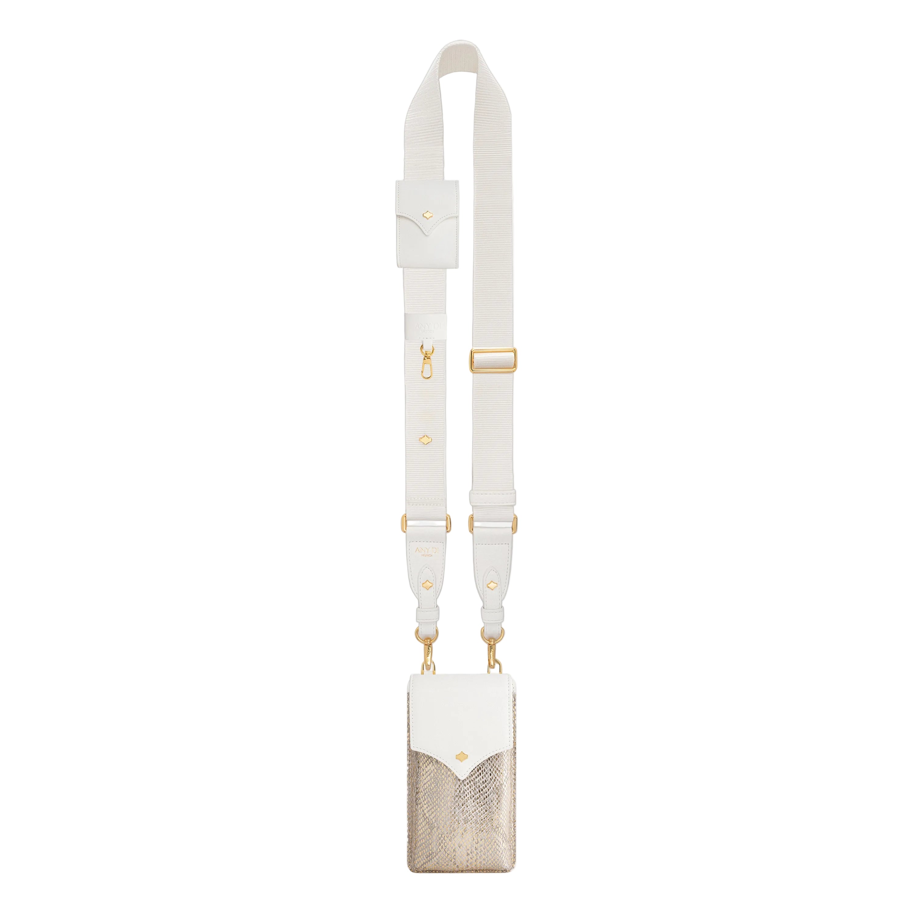 Featuring a durable, wide nylon strap and two modular pouches—one perfectly sized for your sunglasses or keys and one for your phone—this stylish accessory is the ultimate solution for travel or busy days.