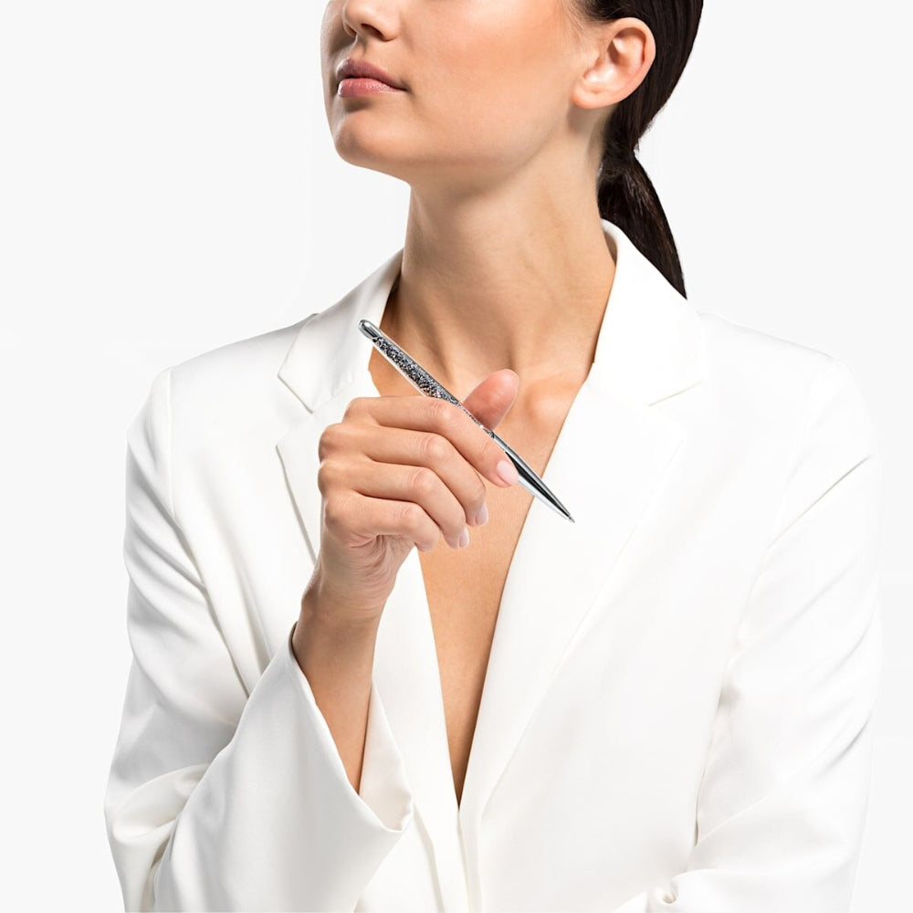 قلم حبر جاف بلوري من سواروفسكي ، باللون الرمادي ، كروم ، مقاس واحد