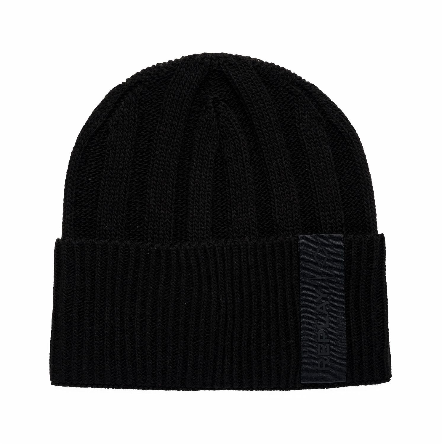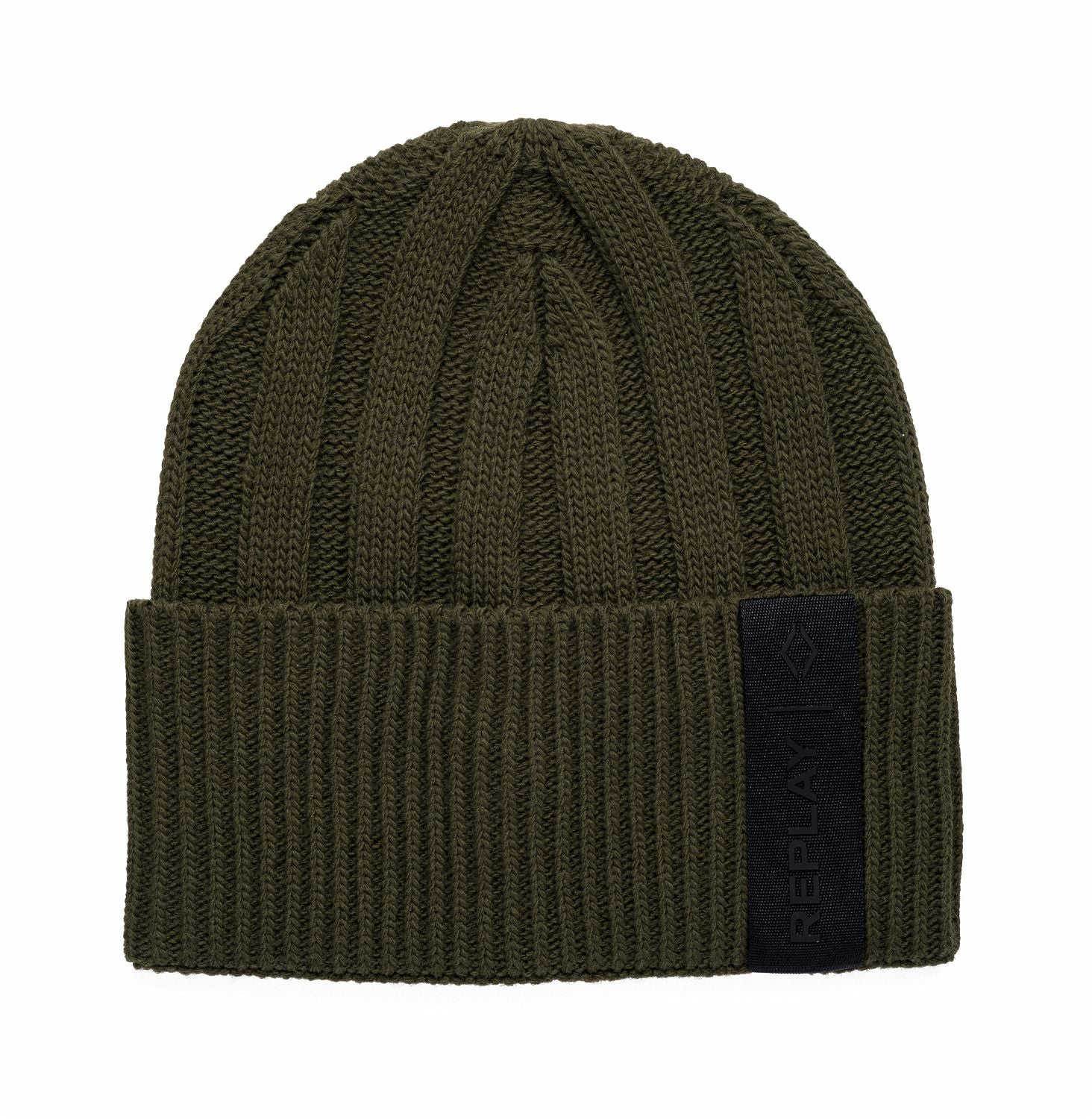 Beanie with soft and warm solid-colored ribbed fabric. Turn-up with customized label on the side.