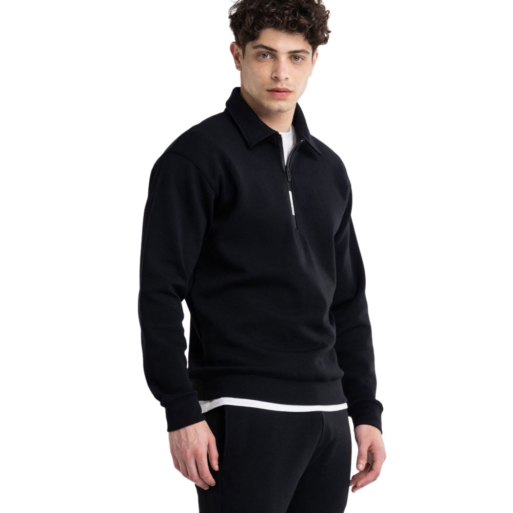 Half-zipper sweatshirt with regular fit. The garment is made of soft and warm stretch cotton and technical nylon, ideal for the winter season. The sweatshirt is refined by the heat-sealed zipper fastening with customization at the front. Jersey, linen and cotton twills combined with natural color create a line of essential pieces for your wardrobe.