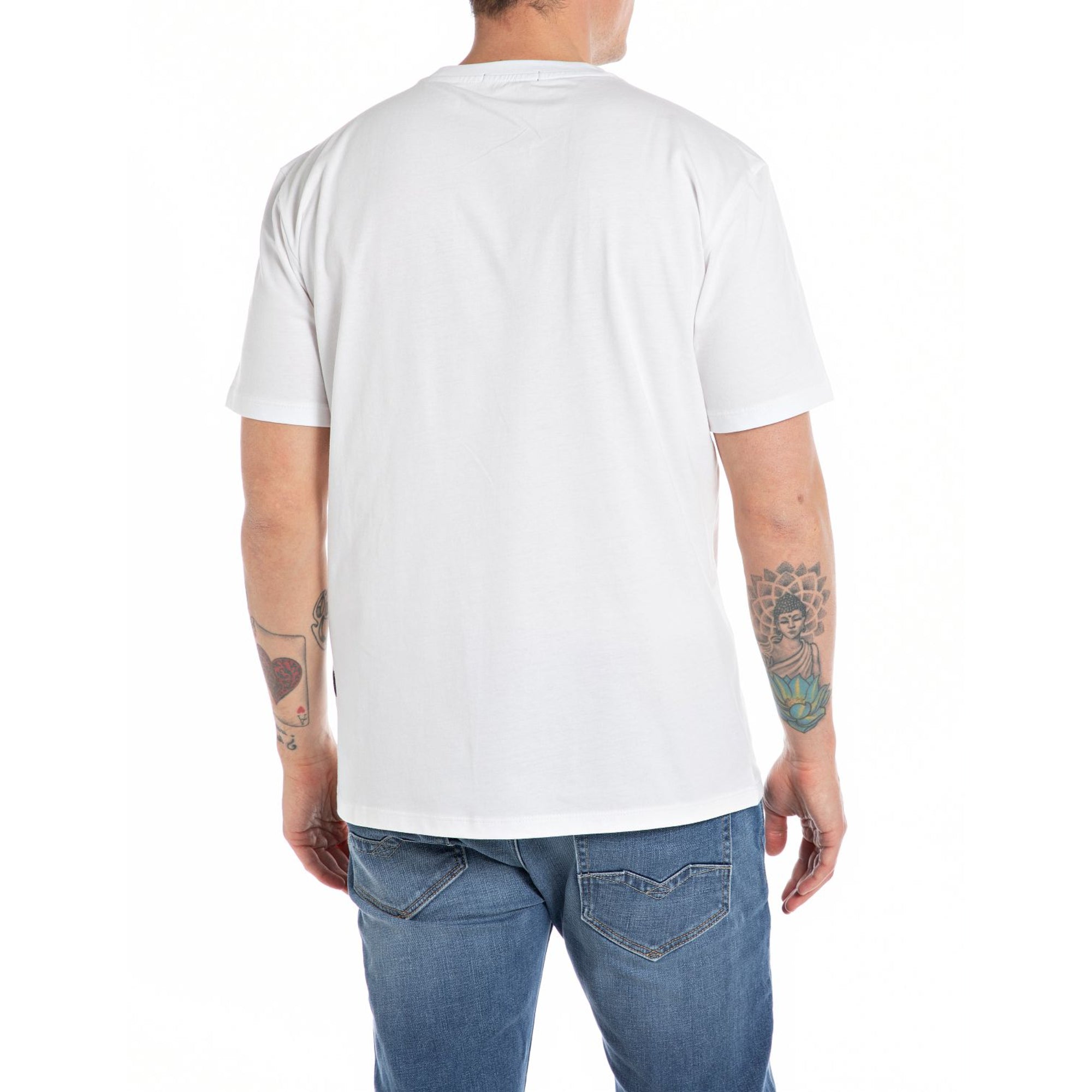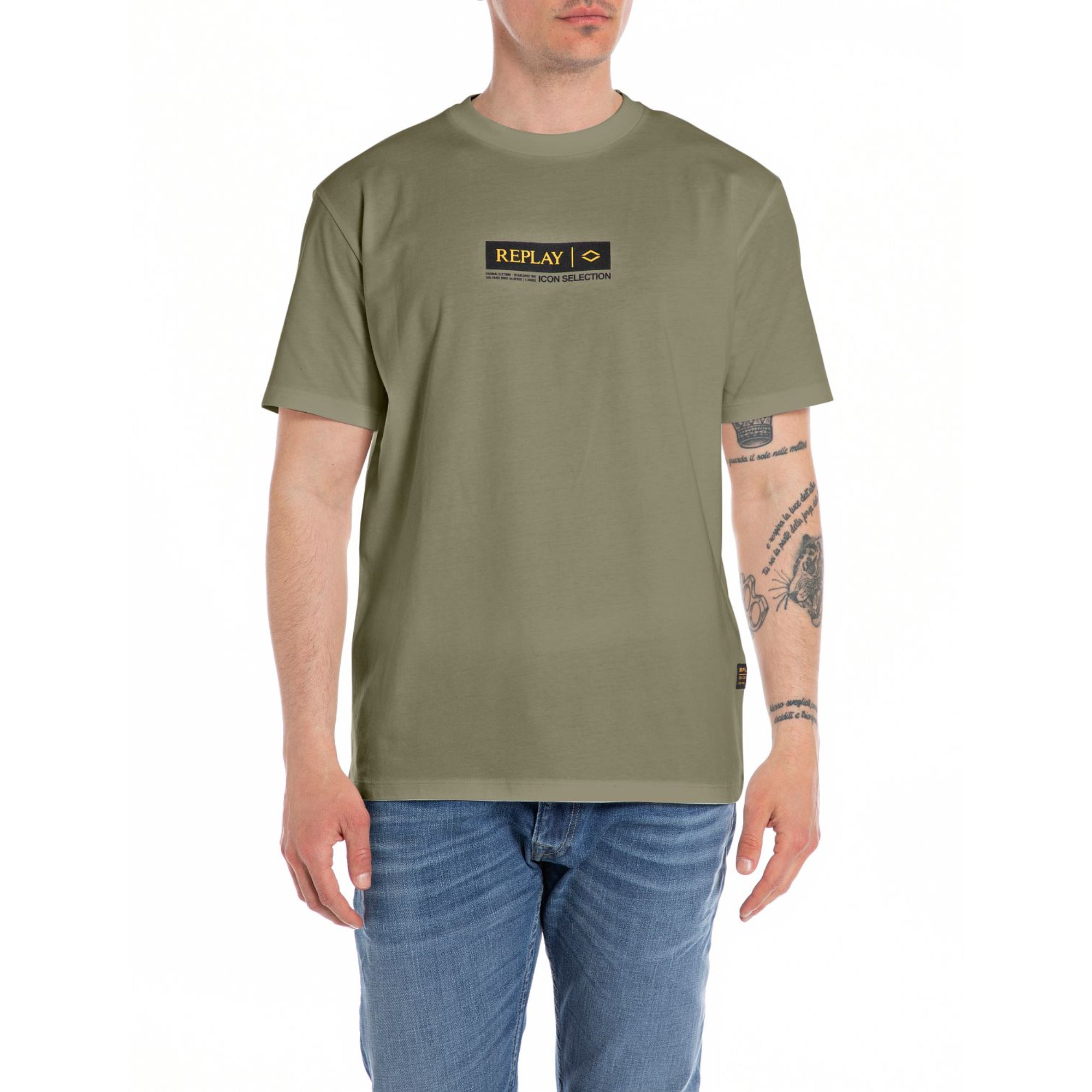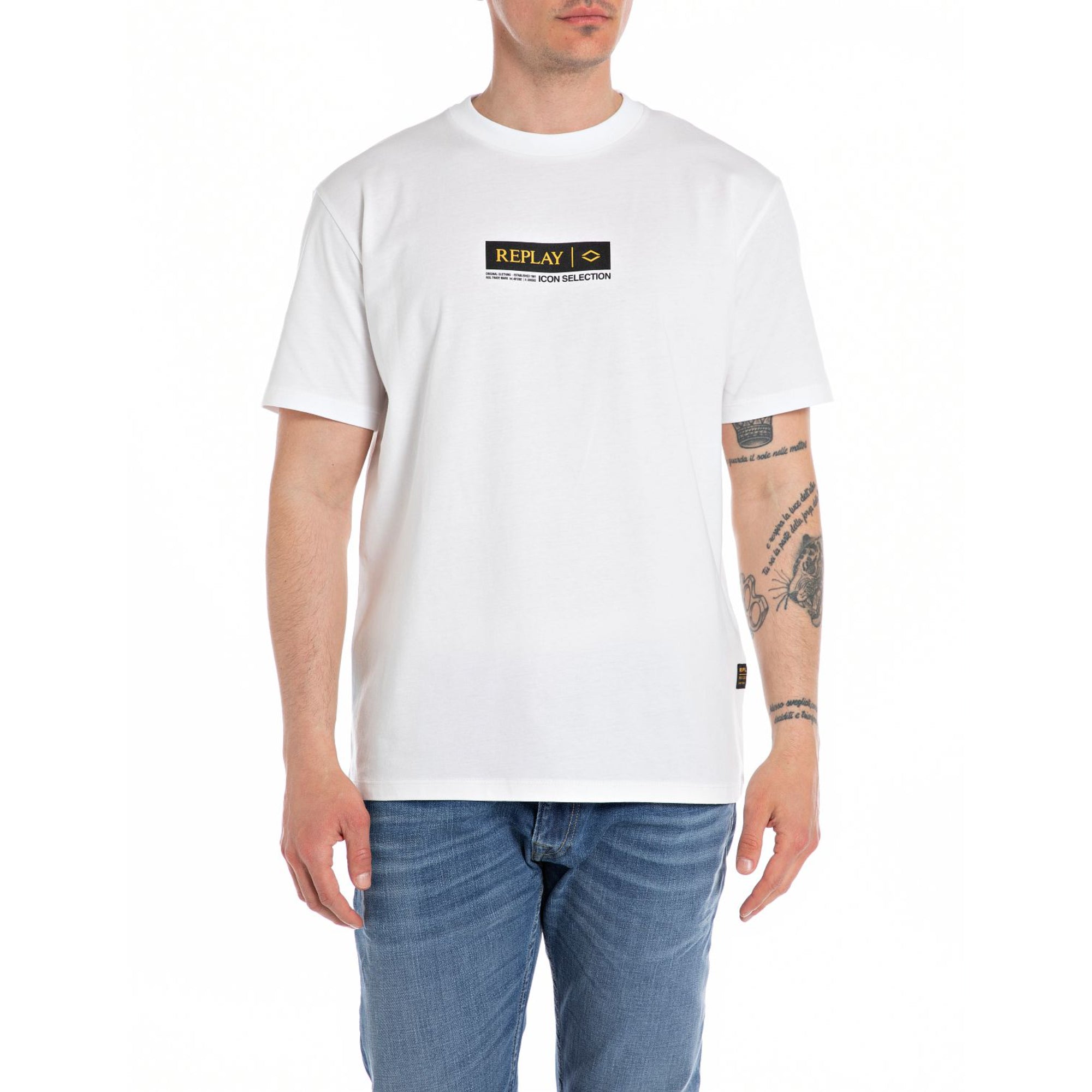 Crewneck t-shirt made of cotton jersey. The short-sleeved garment with regular fit is characterized by the customized print with logo at the front.