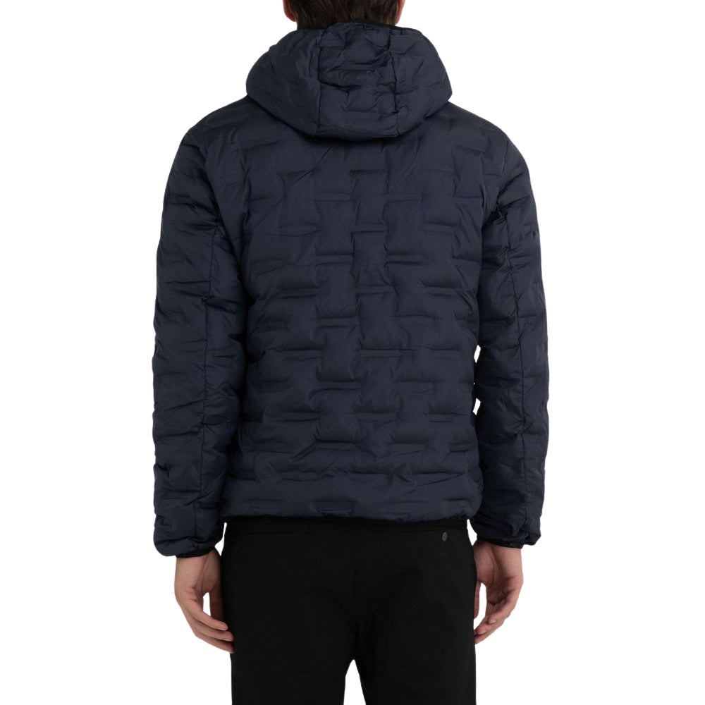 Short jacket with regular slim fit in recycled poly with geometric quilting. The padded piece is perfect as a medium-weight outerwear during the winter season. The contrasting-colored inner lining features the functional printed label.