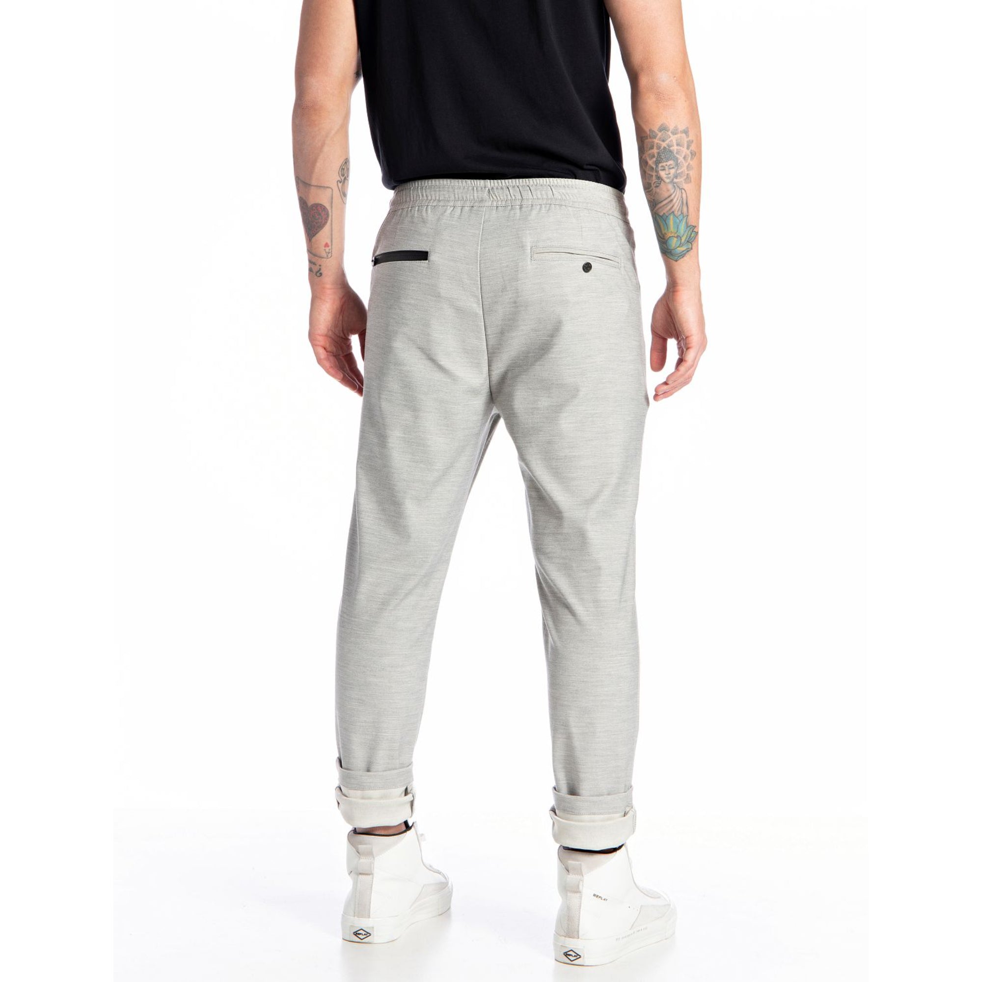 Chino jogger pants made of stretch viscose blend fabric with herringbone pattern. With drawstring at the waistband, the garment features a skinny fit with slim tapered leg. A sporty item with a modern and contemporary touch.