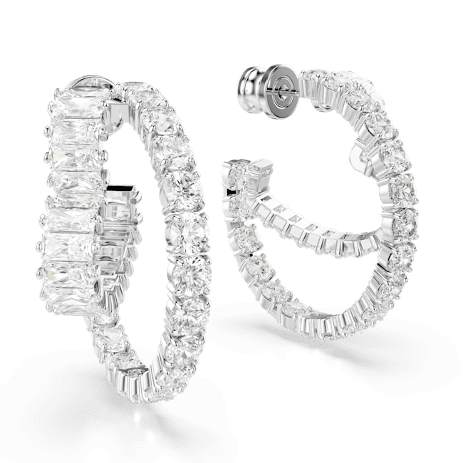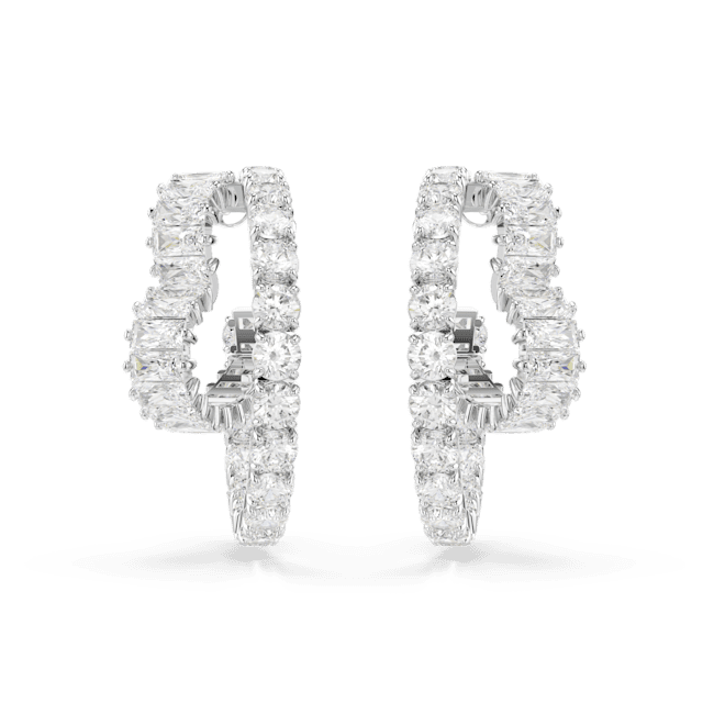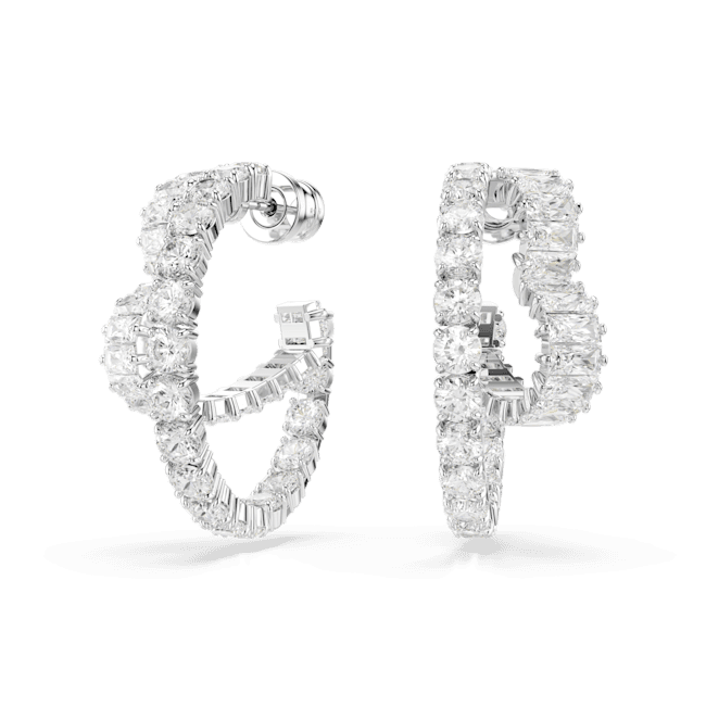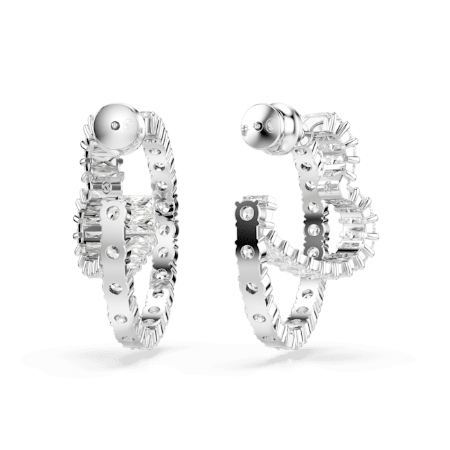 Swarovski Matrix Hoop Earrings Mixed cuts Heart White Rhodium plated