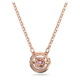 | Swarovski Sparkling Dance pendant Purple, rose gold-tone plated, With this exquisite pendant, you may add radiant sophistication to your collection. It is expertly created with a round purple centrepiece, transparent pavé, and a sparkling chain. A fantastic gift that adds color and class to any outfit. SPECIFICATIONS
