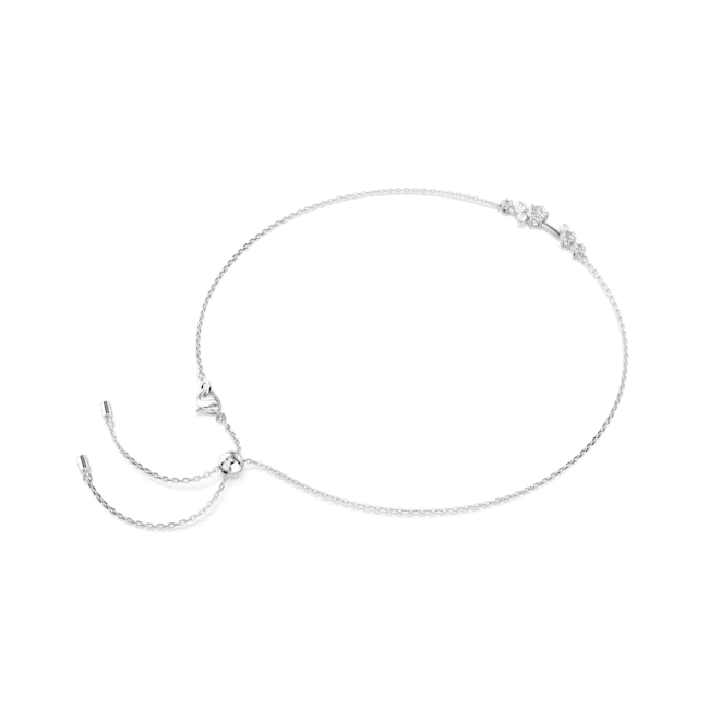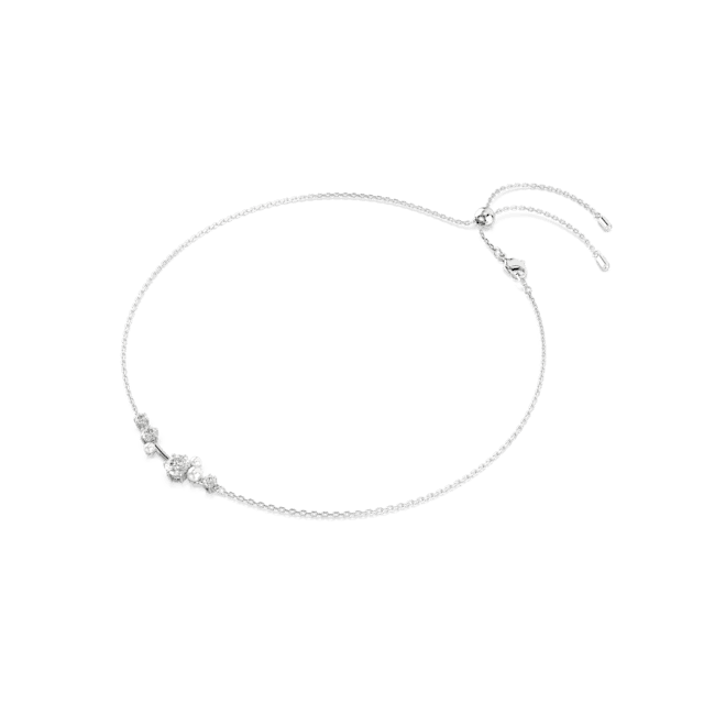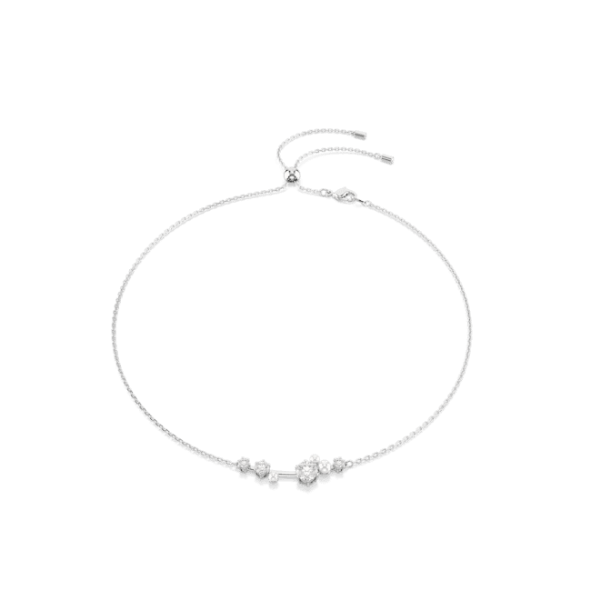 Swarovski Constella Necklace, Crystal Pearl Round Cuts White Rhodium plated. With this adaptable Constella invention, you can take your style to new heights. The rhodium-plated design includes a unique pulling mechanism that allows you to wear the item as a necklace or choker. At the front, the various-sized Swarovski Zirconia and Swarovski Crystal Pearls appear to float among the discrete articulations, creating a sense of cosmic wonder. Explore the various styling options and pair it with a matching ring for limitless light reflections.