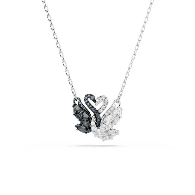 | Swarovski Swan Pendant Swan Black, This rhodium-plated swan pendant, celebrating Swarovski's enduring icon of love and beauty, will add elegance to any outfit. Suspended on a thin chain, the primary design features two entangled swans in rhodium and ruthenium plating, surrounded with black and white Swarovski Zirconia in round and marquise cuts. A stunning example of Swarovski craftsmanship that will stand the test of time. SPECIFICATIONS • Brand: Swarovski • Gender: Women • Length (minimum - maximum): 38 - 45 cm • Motif size: 1.3 x 1.4 cm • Material: Mixed metal finish, Zirconia • Color: Black • Clasp type: Lobster • Country of Origin: Thailand • Manufacturer: SWAROVSKI Care & maintenance • Store your jewelry in the original packaging or a soft pouch to avoid scratches. • Avoid contact with water. • Remove jewelry before washing hands, swimming, and/or applying products (e.g. perfume, hairspray, soap, or lotion), as this could harm the metal and reduce the life of the plating, as well as cause discoloration and loss of crystal brilliance. • Avoid hard contact (i.e. knocking against objects) that can scratch or chip the crystal. |