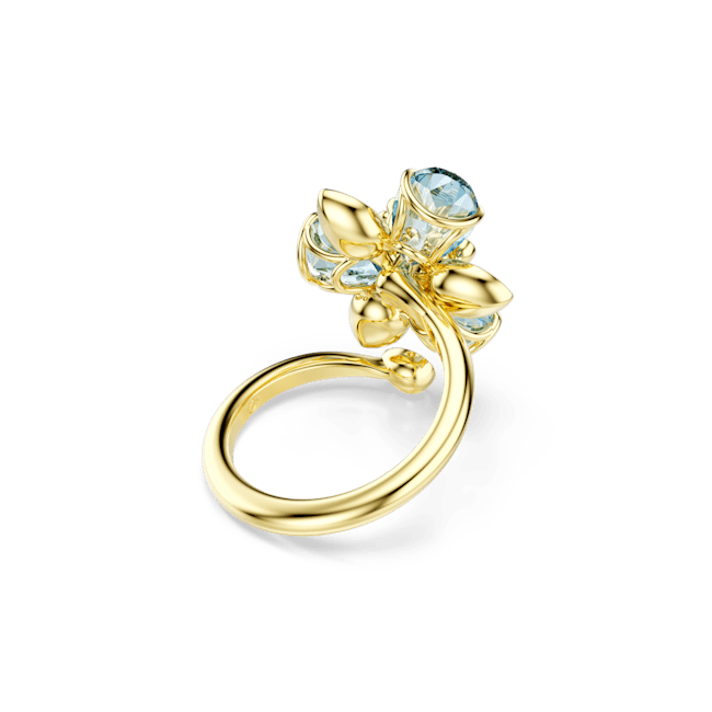 Swarovski Idyllia open Ring Mixed cuts Flower Blue Gold-tone plated Size 55