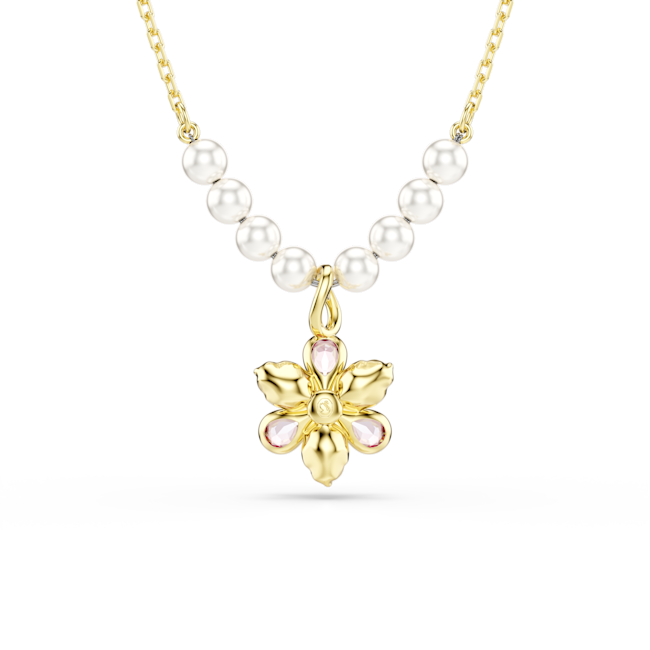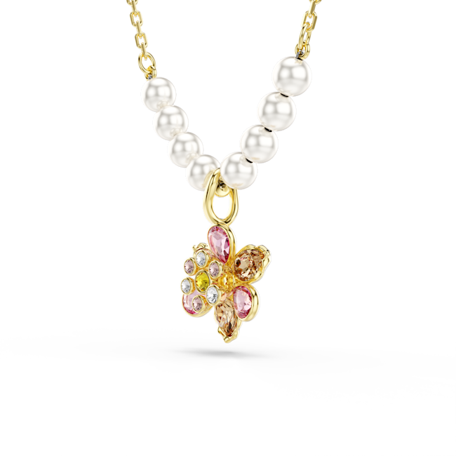 Swarovski Idyllia Necklace Pendant Crystal Pearl Mixed Cuts Flower Multicolored Gold-Tone Plated