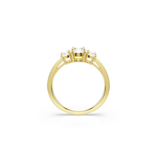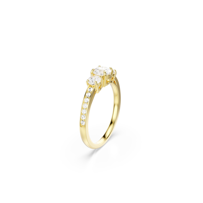The Swarovski Stilla Attract Ring Round Cut in White Gold-Tone Plating is a radiant expression of timeless elegance, crafted to complement every occasion. Part of the refined Stilla family, this ring’s design centers around a trio of meticulously cut Swarovski Zirconia, which glimmer beautifully atop a sleek gold-tone finished band. Additional clear crystals embellish the shank, amplifying the ring’s luminous appeal and enhancing its sophisticated sparkle. Ideal for everyday wear, this piece effortlessly blends versatility with luxury and can be easily matched with other jewelry from the same family, making it a perfect addition to any ensemble or collection.