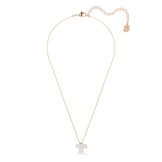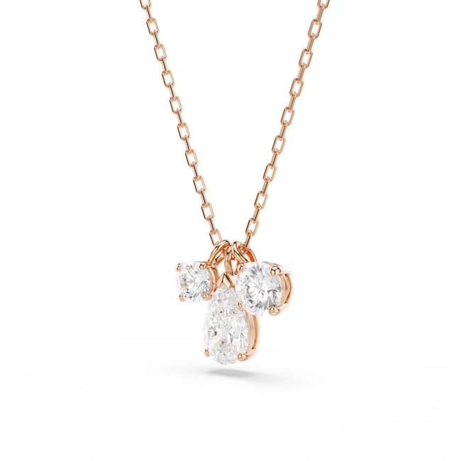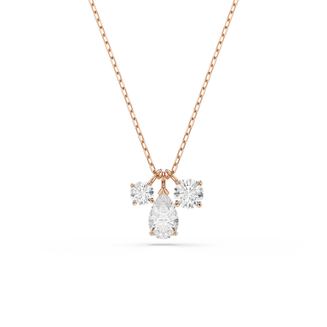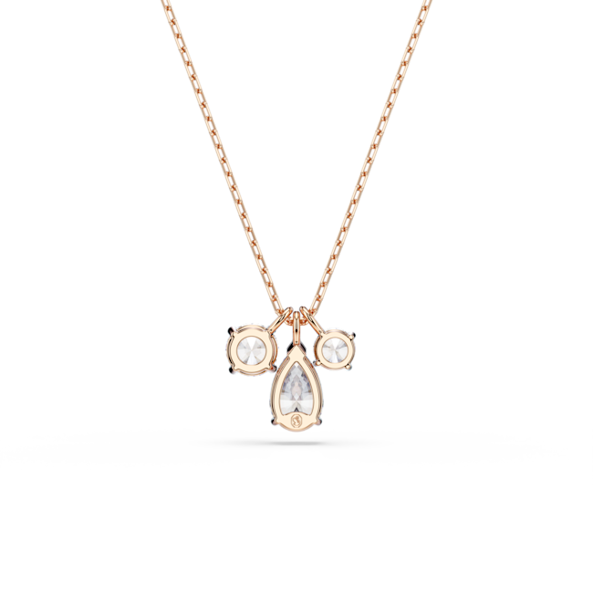 For an expression of artful craftsmanship, this Mesmera pendant is adorned with three shimmering Swarovski Zirconia, including a central, pear-shaped stone complemented by two smaller round stones on either side. Delicate facets create a refined yet simple look, perfect for embellishing everyday outfits with light. This rose gold-tone plated pendant is suspended from a delicate chain and is a great match with similar pieces from the same family.