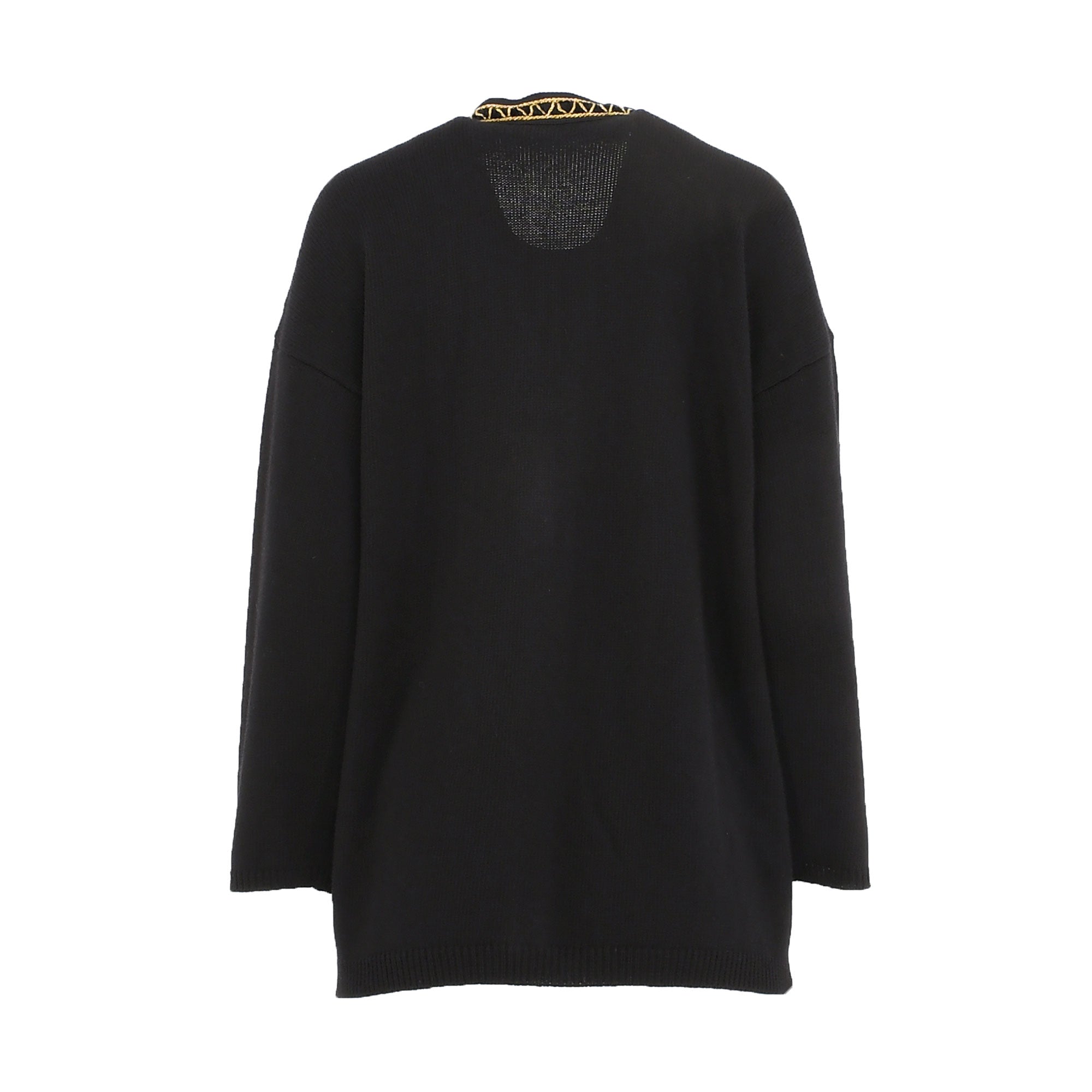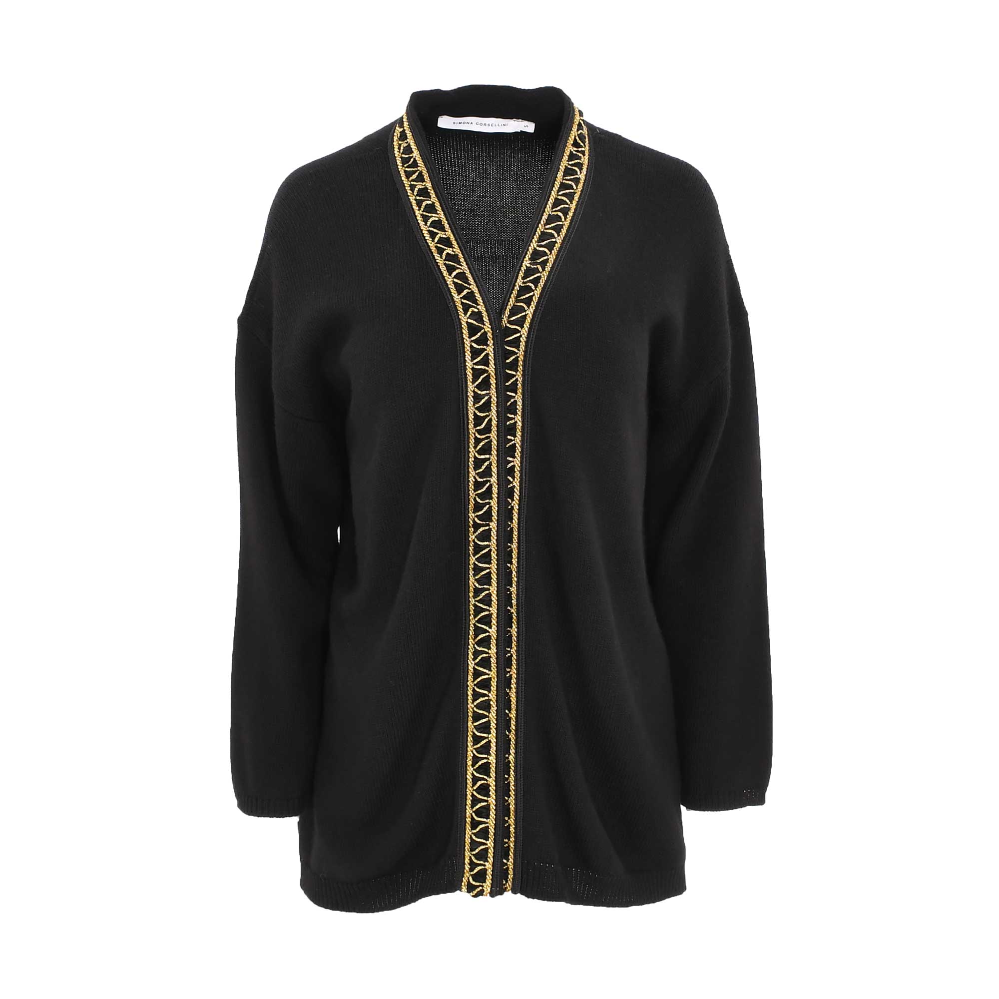 | Simona Corsellini's adorable Cardigan in black is cozy and is made of soft wool. This full-sleeved style has a golden lace detail to the front. This Cardigan has front open for a complete look. It is the perfect combination of style and comfort for any girl who wants to express her own sense of fashion. SPECIFICATIONS :