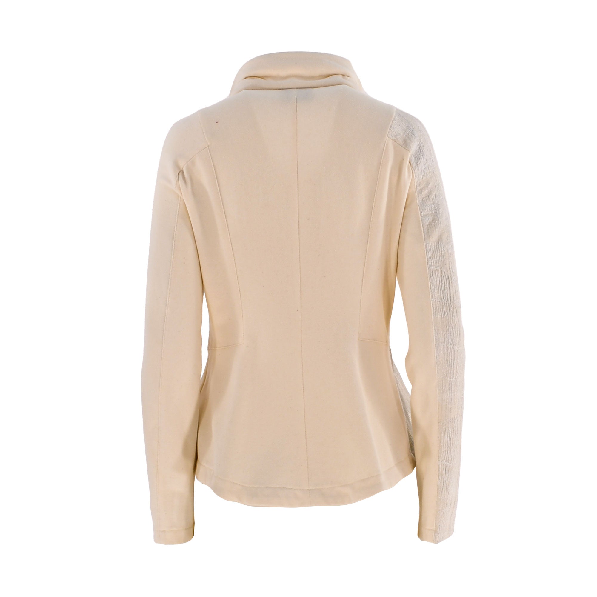 Oblique Creations, which was established in Bologna in 2006, is known for its stylish and sophisticated clothing for women. The Italian label creates figure-flattering garments that are appropriate for both work and after-hours events, thanks to the use of dramatic silhouettes and structural cuts. Oblique's Beige jacket has a distinct style. This jacket is made fine stretchable fabric . It has a stand collar neck, and long sleeves. It has texture on one side of the jacket . It has a front zip closure . Its design makes it easy to put on and take off. Wear this stunning jacket to round out your casual ensemble.