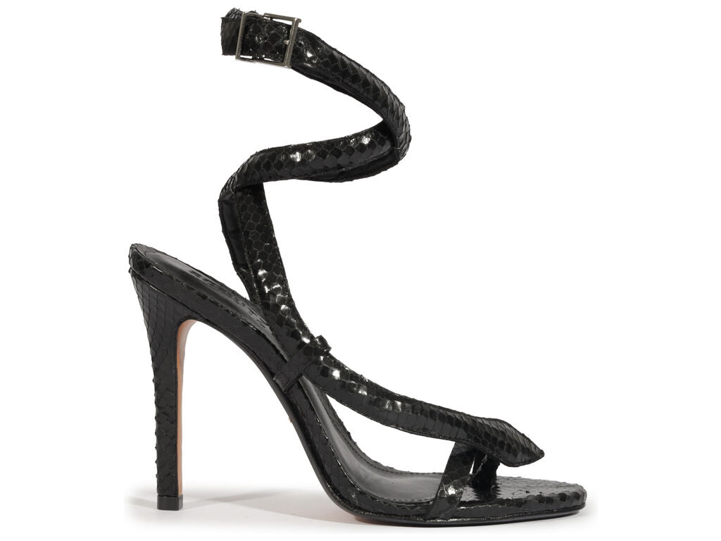 Schutz Women's Black Stiletto Ankle-Wrap High Heel Sandal