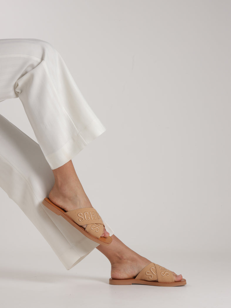 Schutz Women's Tan Logo Embroidered Slide Sandal