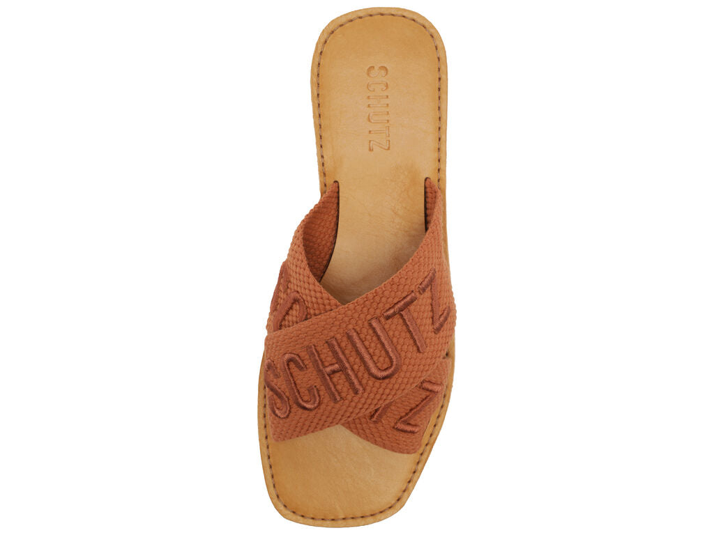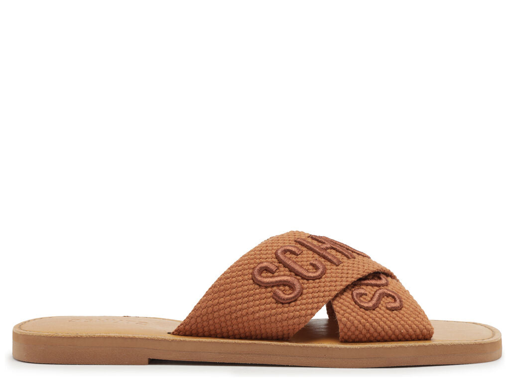 Schutz Women's Tan Logo Embroidered Slide Sandal