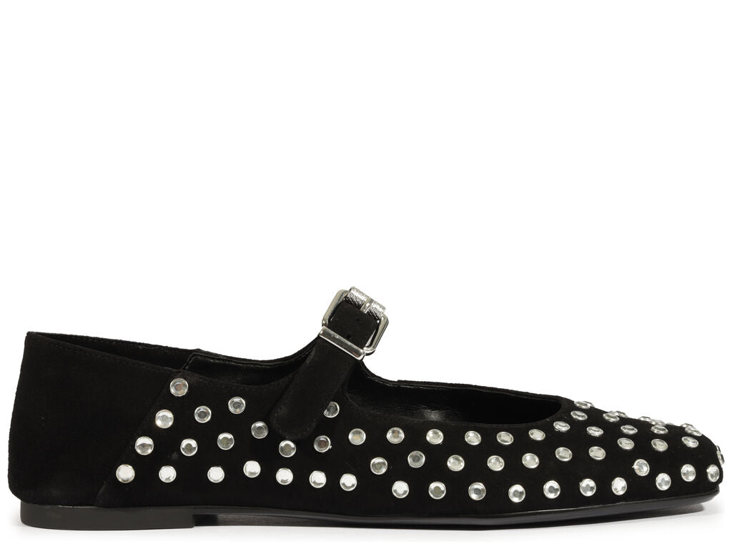 Schutz Women's Black Suede Crystal Embellished Mary Jane Flat