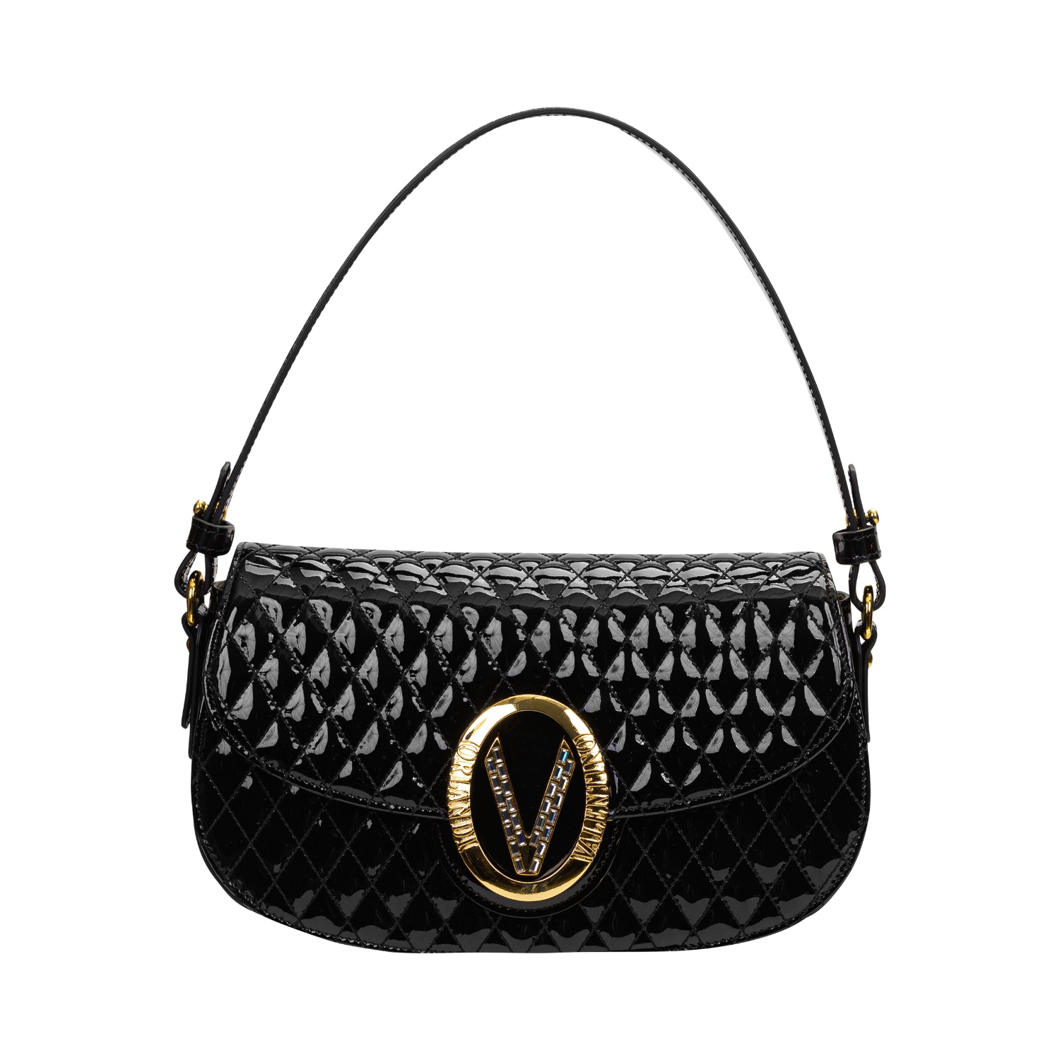 Orlandi Valentino Women's Jewel Black Quilted Patent Leather Hand Bag