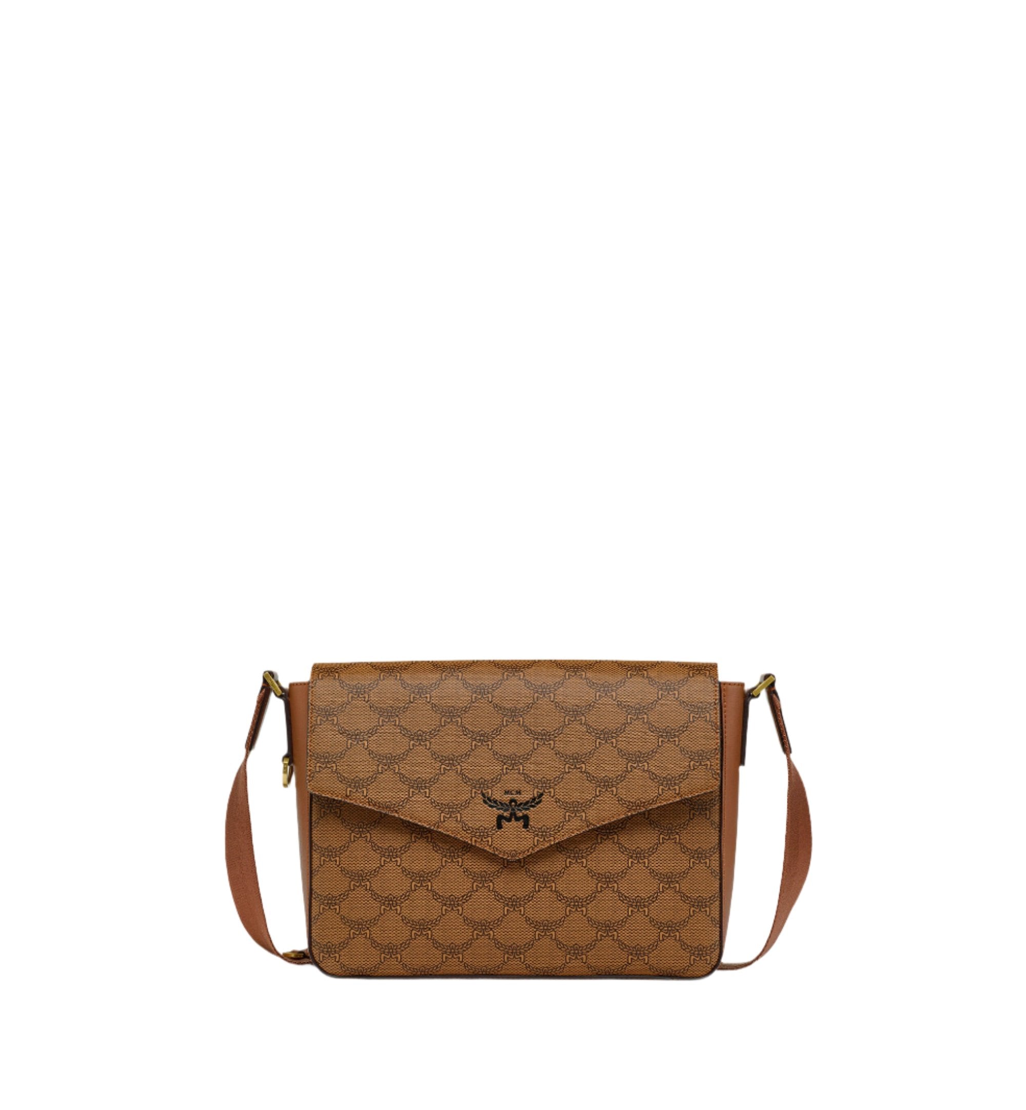 MCM Women's Lauretos Monogram Messenger Bag with Natural Nappa Leather Trim