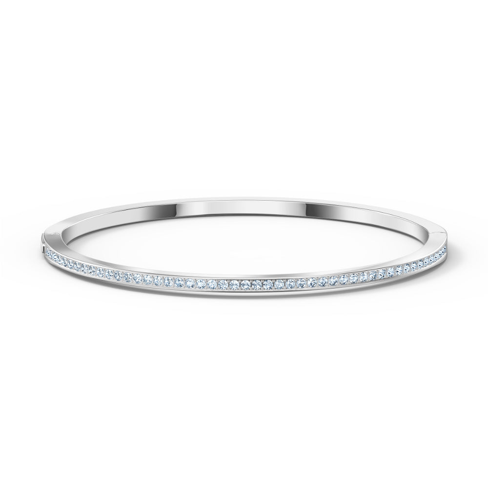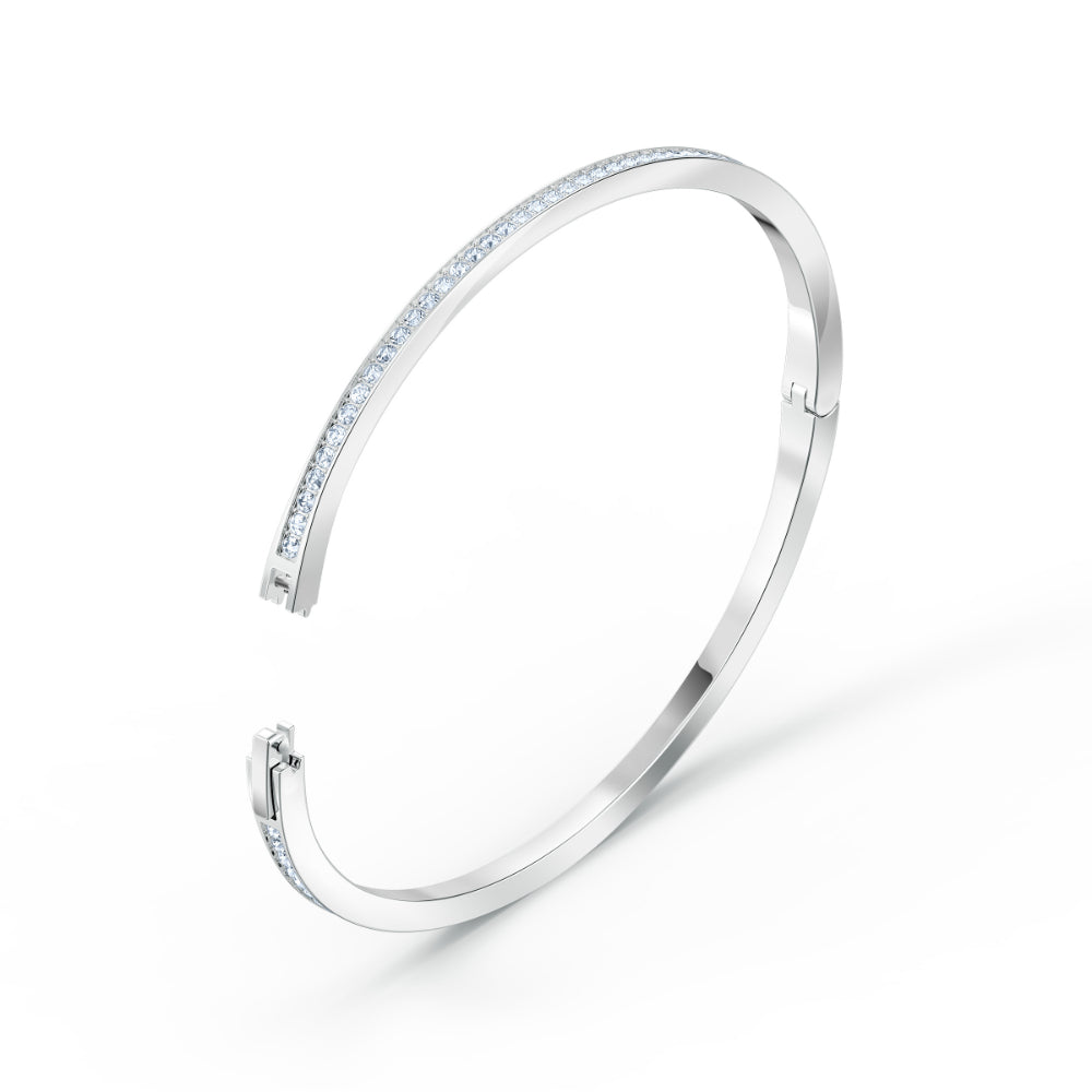 This attractive and stylish bangle by Swarovski is an essential addition to any jewelry collection. It is beautifully embellished with a line of clear crystal pavé that adds brilliant sheen to the design while its slim outline complements a multitude of styles, perfect for accentuating your everyday looks.