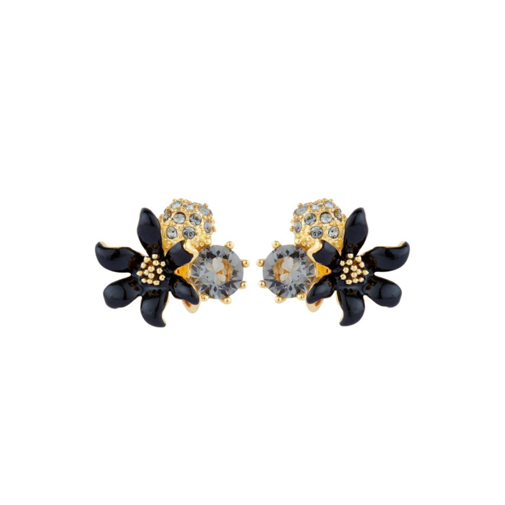 Les Nereides Black Lily and Sphere Paved With Crystal Clip-On Earrings