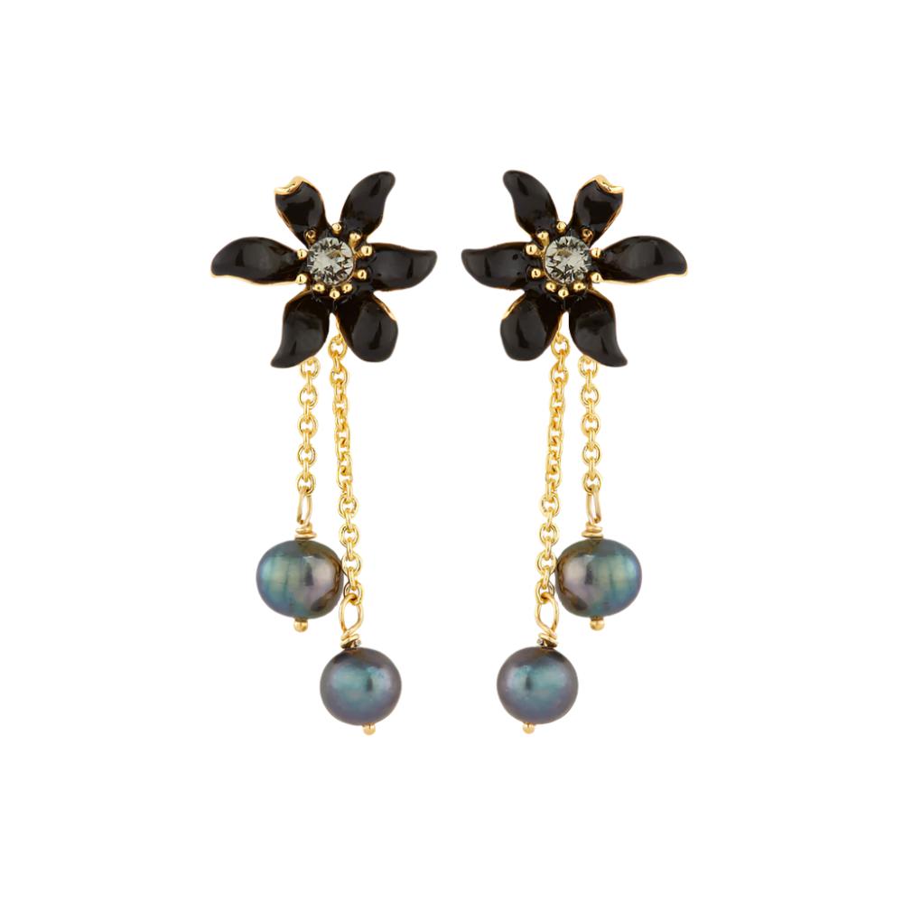 Les Nereides Black Lily and Cultured Pearls Post Earrings