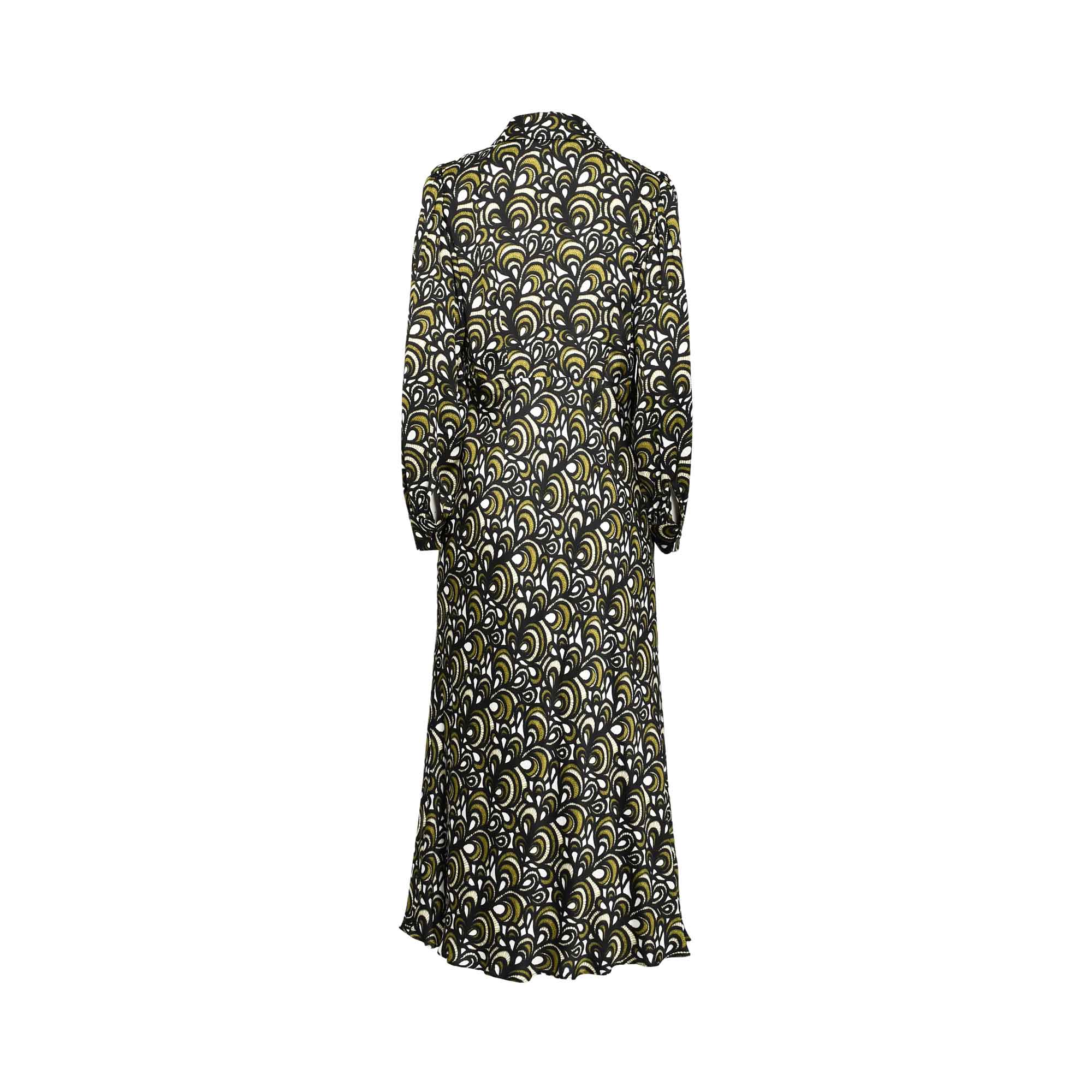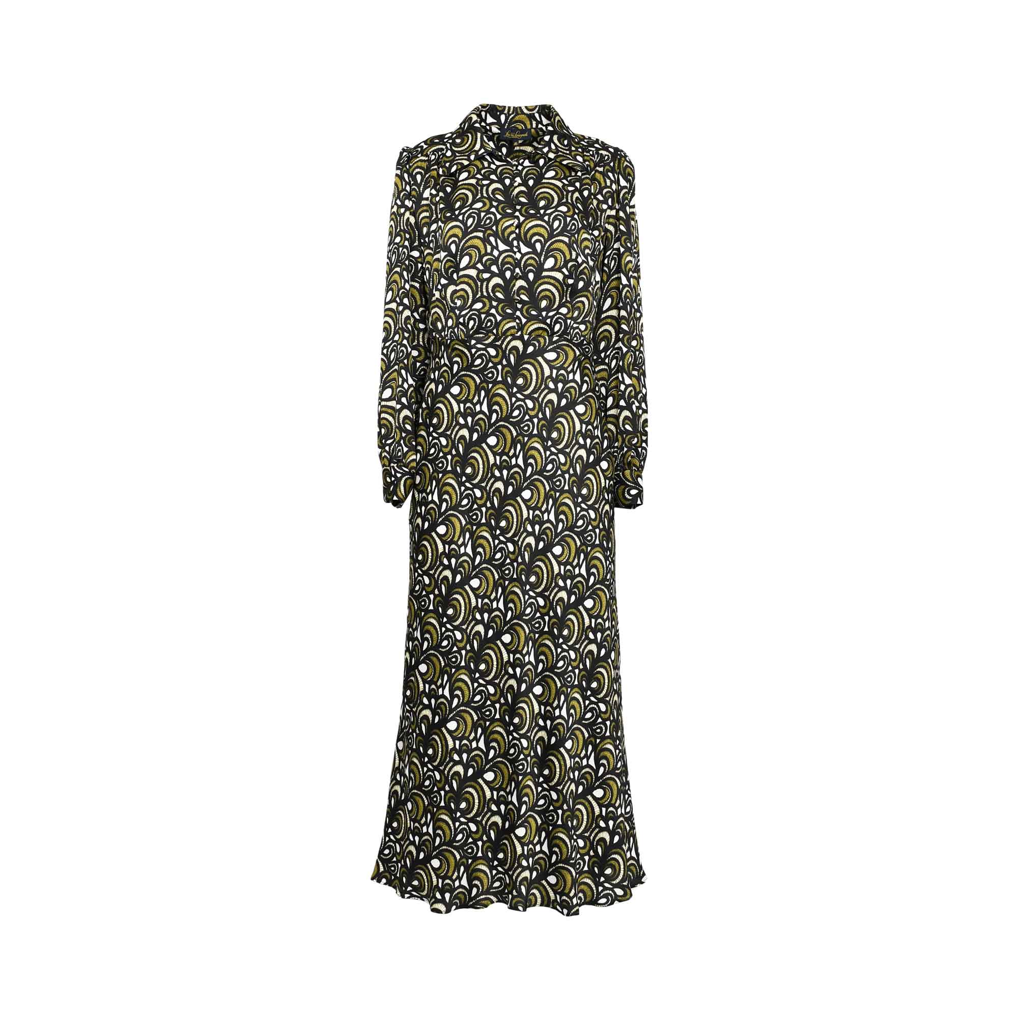 The Luisa Spagnoli Giovina Women's Green/Black Dress is a stylish and sophisticated piece that combines classic design with contemporary flair. Crafted from soft, breathable viscose, the dress features a distinctive military green hue that adds a touch of elegance and versatility to your wardrobe. It is designed with a turn-down collar that enhances its refined look, while the front button fastening provides both functionality and a polished finish. The dress showcases a printed pattern, adding visual interest without overwhelming the overall aesthetic. One of its standout features is the balloon sleeves with cuffs, which lend a trendy and feminine silhouette, balancing volume and structure beautifully. Perfect for both casual and semi-formal occasions, this dress embodies a chic blend of comfort, style, and modernity.