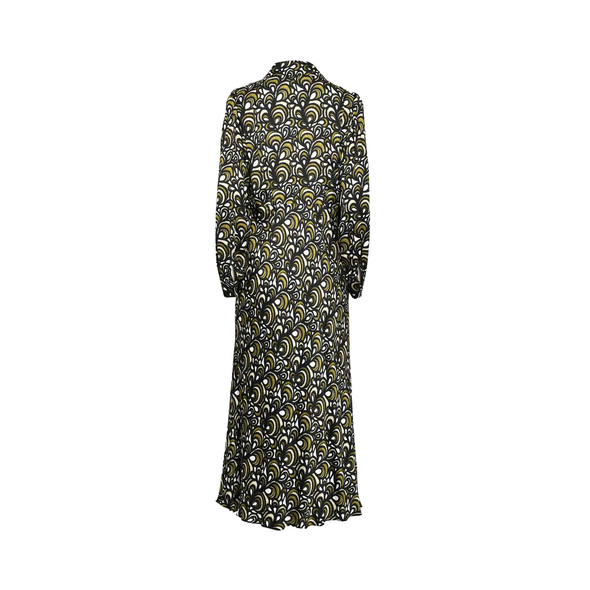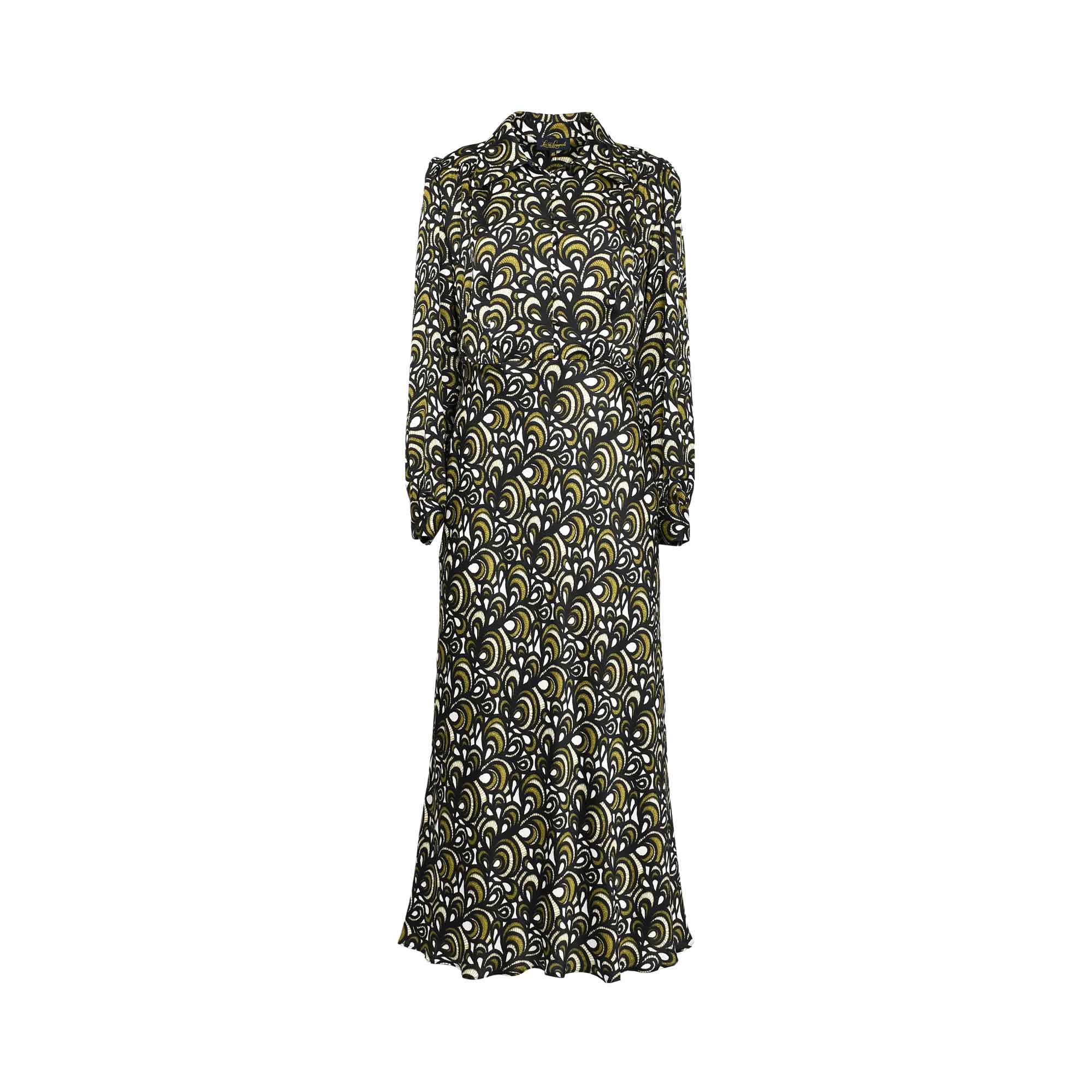 The Luisa Spagnoli Gravita Women's Military Green Dress is a stylish and sophisticated piece that combines classic design with contemporary flair. Crafted from soft, breathable viscose, the dress features a distinctive military green hue that adds a touch of elegance and versatility to your wardrobe. It is designed with a turn-down collar that enhances its refined look, while the front button fastening provides both functionality and a polished finish. The dress showcases a printed pattern, adding visual interest without overwhelming the overall aesthetic. One of its standout features is the balloon sleeves with cuffs, which lend a trendy and feminine silhouette, balancing volume and structure beautifully. Perfect for both casual and semi-formal occasions, this dress embodies a chic blend of comfort, style, and modernity.