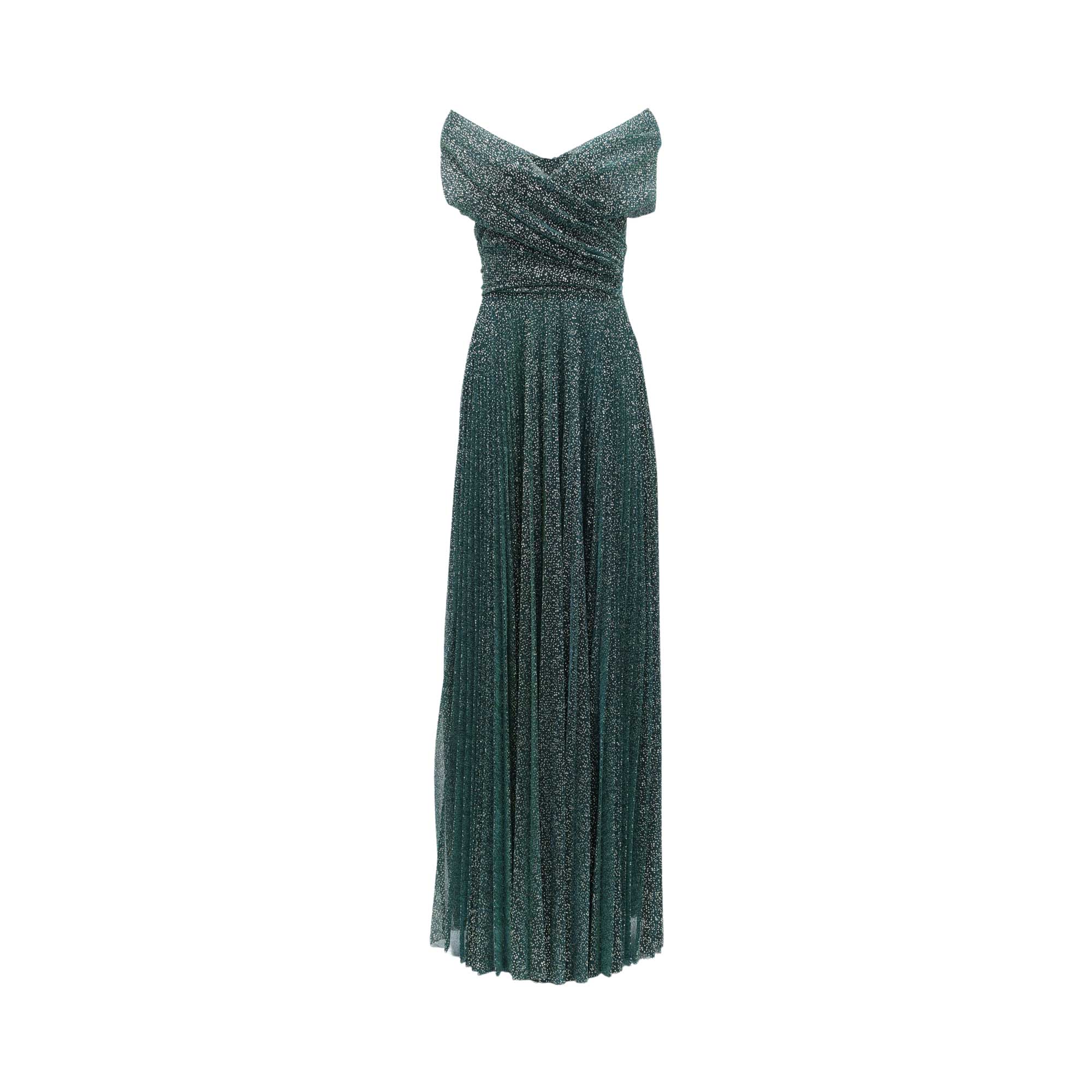 The Talbot Runhof Women's Emerald Green Long Dress is a stunning and elegant piece perfect for special occasions. It is crafted from a luxurious emerald green voile fabric, giving it a rich and vibrant hue. The dress features intricate bead detailing on the bodice, adding texture and sparkle to the look. The off-shoulder neckline is both sophisticated and alluring, accentuating the shoulders and collarbone. The dress has an A-line skirt, which flares out from the waist, creating a flattering silhouette. Its concealed rear fastening ensures a seamless and polished look. The floor-sweeping skirt adds a touch of drama and makes this dress a show-stopping choice for any formal event. The Talbot Runhof Women's Emerald Green Long Dress is a statement piece that exudes glamour and sophistication.