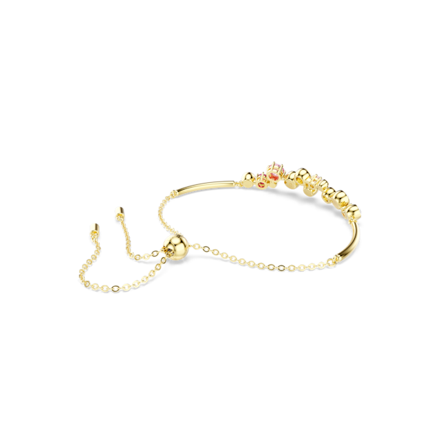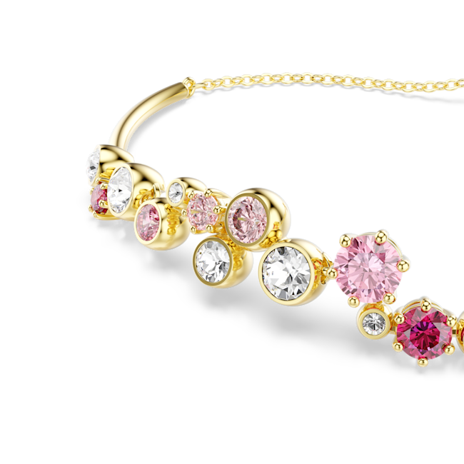 The Swarovski Constella Bracelet Mixed Cuts Multicolored Gold-Tone Plated is a stunning piece that radiates warmth and joyful elegance. Designed to let your playful side shine, this bracelet features a delicate chain complemented by gold-tone plated bars, creating a refined and contemporary look. The vivid display of crystals and Swarovski Zirconia in various sizes brings dynamic texture to the design, with an eye-catching combination of clear, pink, and red shades that capture the light beautifully. Its captivating mix of colors and cuts adds a sense of movement and charm, making it perfect for both everyday wear and special occasions. The bracelet is thoughtfully finished with a sliding adjustment mechanism, allowing for effortless customization to achieve the perfect fit. The Constella bracelet embodies Swarovski’s expertise in craftsmanship and innovative design, making it a delightful addition to any jewelry collection.