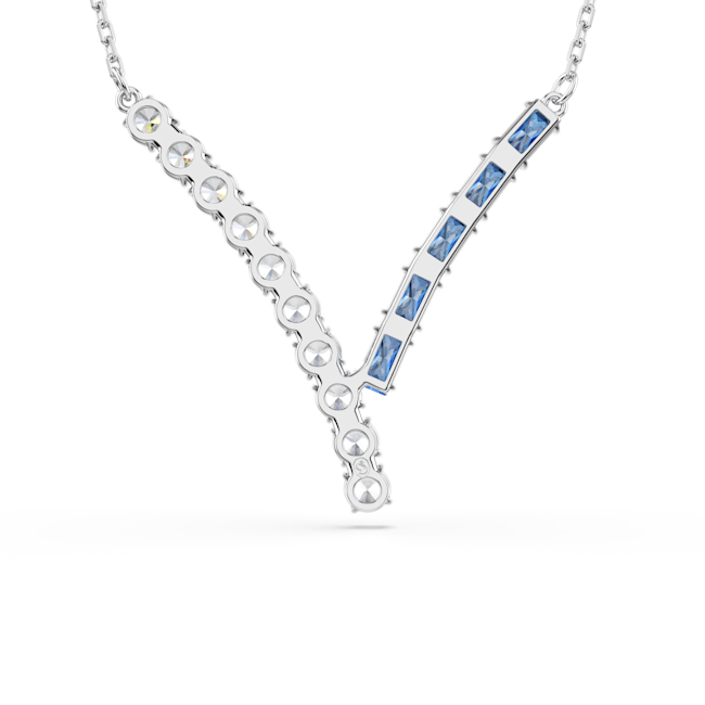 The Swarovski Matrix Necklace Pendant in Mixed Cuts Blue Rhodium Plated is a striking piece that effortlessly combines modern elegance with dazzling brilliance. Showcasing a distinctive v-shape silhouette, the pendant is carefully crafted with a luminous rhodium-plated finish that enhances its contemporary appeal. Its design is brought to life by a lively combination of round and baguette-cut Swarovski Zirconia in stunning blue and clear hues, creating a vivid display of sparkle and color. Suspended gracefully from a delicate chain, this pendant stands out as a radiant focal point, whether worn alone or paired with other pieces from the Matrix collection. Perfect for adding a touch of refined energy to any outfit, this pendant exemplifies Swarovski’s mastery in blending cutting-edge style with timeless sophistication.
