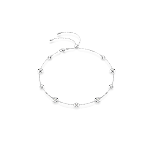 The Swarovski Una Angelic Necklace with Round Cut Double Sided Motifs in White Rhodium Plated finish is a stunning and innovative addition to any jewelry collection. Designed for versatility, this unique piece can be elegantly worn as either a necklace or a choker, adapting seamlessly to a variety of styles and occasions. Its rhodium-plated chain is not only sleek and contemporary but also features a sliding mechanism for an effortlessly adjustable fit. The necklace is adorned with dazzling, double-sided motifs encrusted with sparkling round-cut crystals, allowing you to simply reverse the piece for a fresh and different display. This feature provides two radiant looks in one, making it ideal for everyday sophistication. Pairing beautifully with other Una Angelic pieces, this necklace adds a touch of ultimate radiance and timeless elegance to any ensemble.