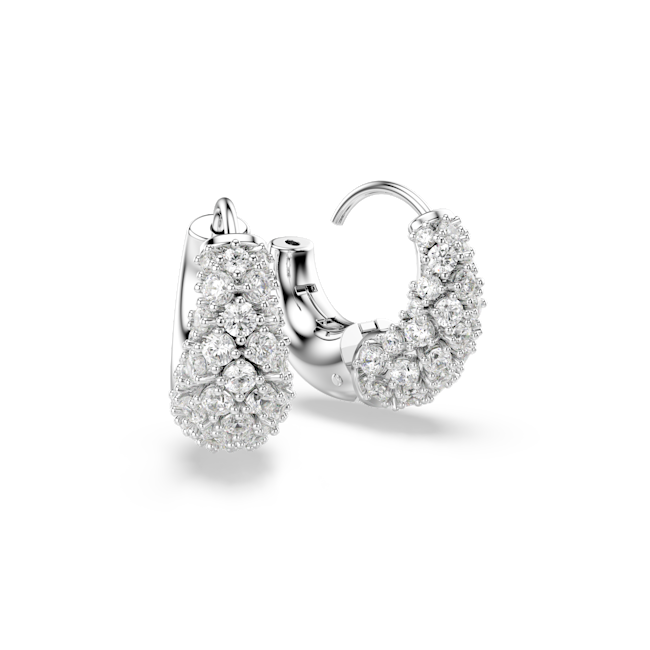 The Swarovski Sublima Earrings in White Rhodium Plated finish exemplify delicate elegance and radiant charm. Crafted with meticulous attention to detail, these earrings shimmer brilliantly, thanks to their rhodium-plated setting and a dazzling arrangement of clear Swarovski Zirconia. The gemstones are expertly set using the intricate chatonnage technique, ensuring both security and sparkle. Enhancing their practicality, an innovative spring plate mechanism guarantees that these earrings are exceptionally comfortable and easy to wear throughout the day. Perfect for both daytime sophistication and evening glamour, the Sublima earrings become even more captivating when paired with a matching Sublima pendant or ring, allowing you to infuse your entire ensemble with an aura of luminous beauty.