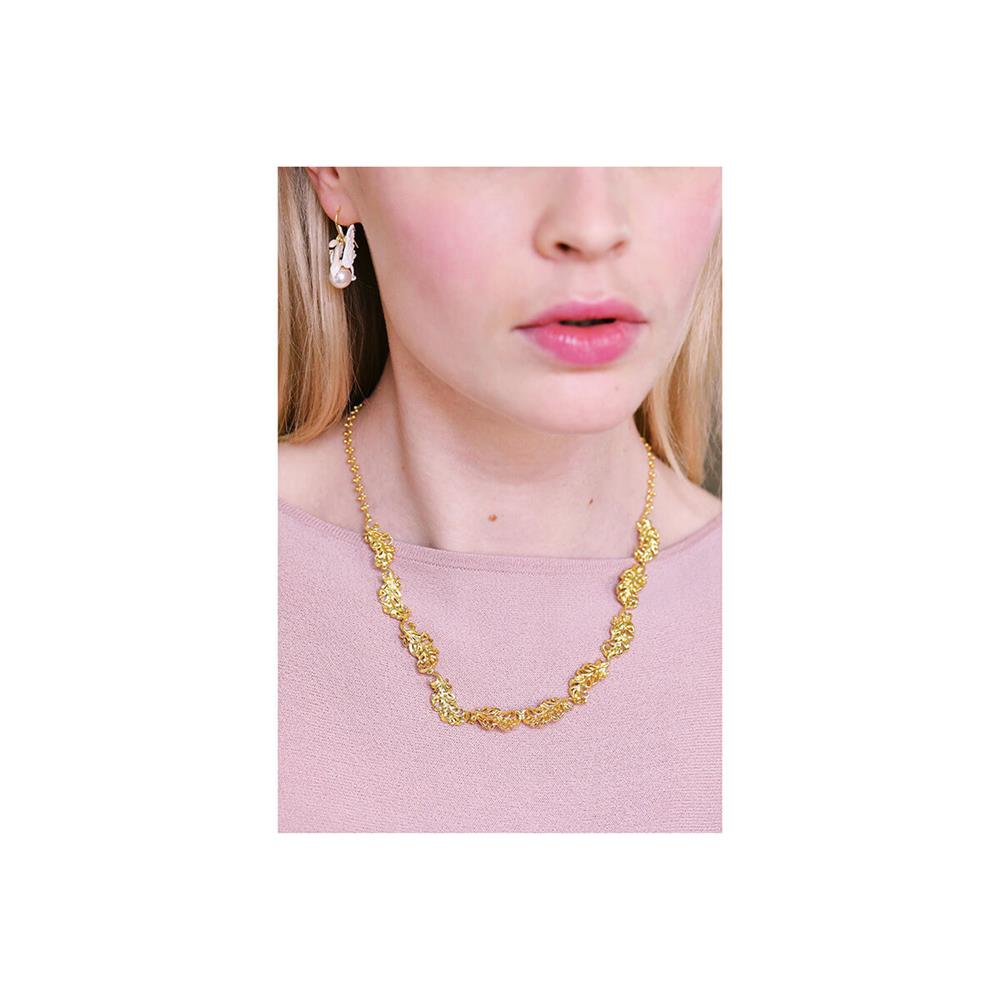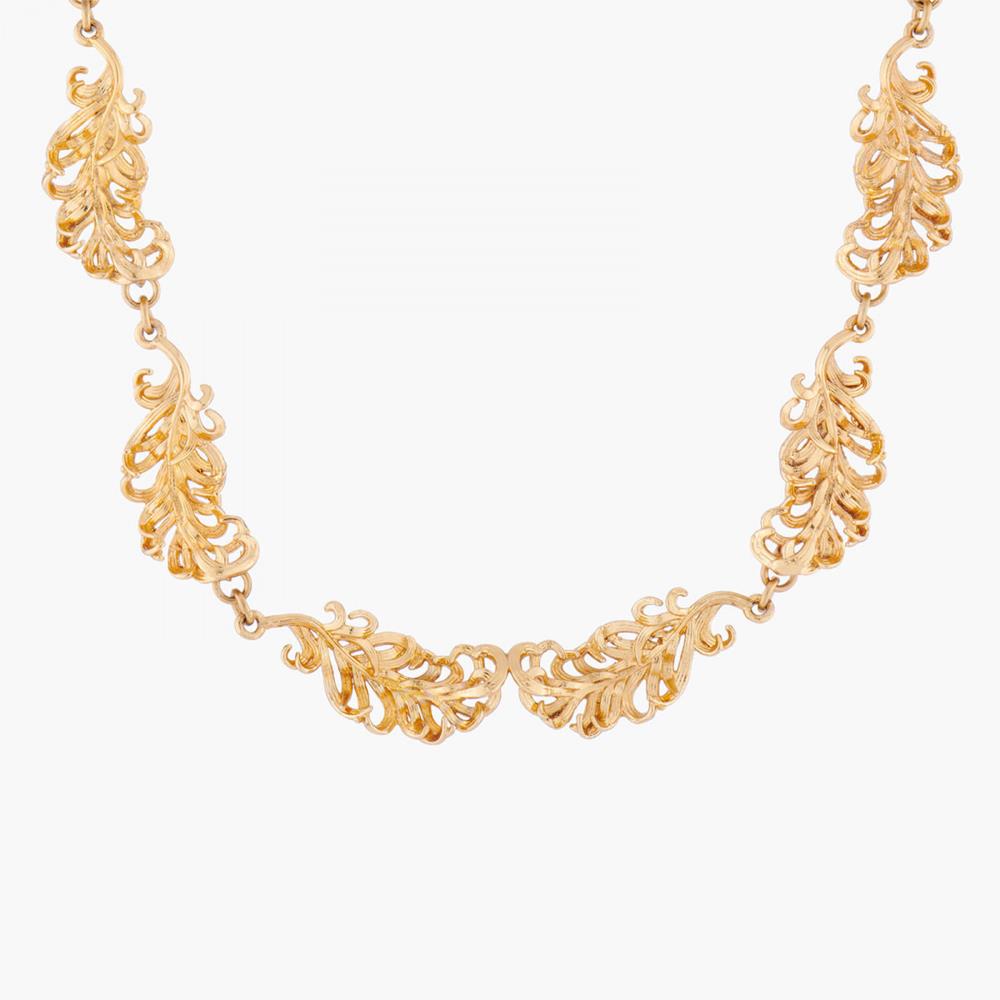 مجموعة من ريش الذهب الفاخر تستقر على معصمك في قلادة ريشة البجعه من مجموعة بجعة بسيطة، تحية لهذا الطائر المهيب الجميل. قطعة فريدة من المجوهرات المصممة من لا ميزون ليه نيريدس. قلادة المجوهرات هذه مصنوعة من النحاس المطلي بالذهب ، بما يتماشى مع المعرفة التقليدية ليه نيريدس.