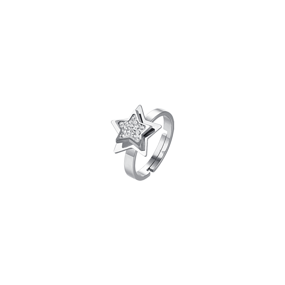 Luca Barra Ladies Steel Ring with Star and White Crystals